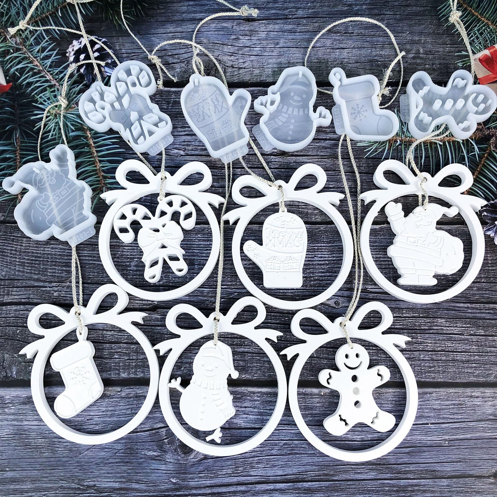 Kreative Weihnachts-Anhänger selbst machen! Dieses 2-teilige Silikonform-Set ist perfekt für Bastelfans. Einfach Gipspulver oder Epoxidharz in die Form gießen, aushärten lassen und schon hast du wunderschöne Weihnachtsanhänger. Die glatte, antihaftbeschichtete Innenseite macht das Entformen super einfach. Aus hochwertigem, elastischem Silikon - langlebig und oft wiederverwendbar. Nach dem Gebrauch leicht reinigen, trocknen und fürs nächste Mal aufbewahren. Die fertigen Anhänger sind perfekt für Weihnachtsbaum, Fensterdekoration oder als Geschenk für Freunde und Familie. Mach dein Zuhause weihnachtlich gemütlich mit selbstgemachten Deko-Stücken!