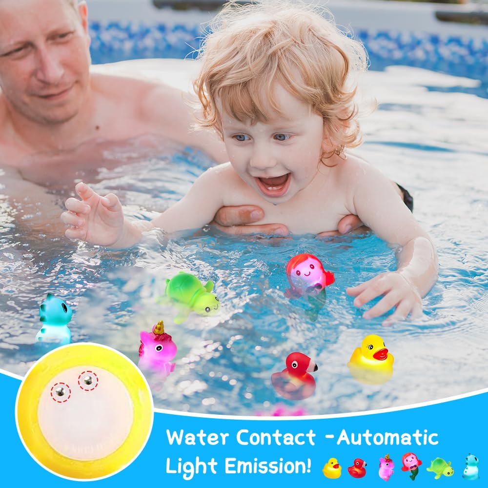 Weihnachtlicher Badespaß für die Kleinen! Dieses 6-teilige Set mit Weihnachtsfiguren bringt festliche Stimmung in die Badewanne. Weihnachtsmann, Rentier, Tannenbaum und Co. leuchten automatisch, sobald sie ins Wasser kommen - ganz ohne Knöpfe drücken! Aus weichem, kindersicherem Vinyl gefertigt, ohne scharfe Kanten. Perfekt für Kinder ab 18 Monaten geeignet. Die Figuren sind wasserfest und bei guter Pflege schimmelfrei. Einfach nach dem Baden trocknen lassen und beim nächsten Bad wieder verwenden. Super als Geschenkidee zu Weihnachten, für den Adventskalender oder einfach als Überraschung für die Badewanne. Maße pro Figur: ca. 18x13,5x5,5 cm. Macht das Baden zum festlichen Erlebnis!