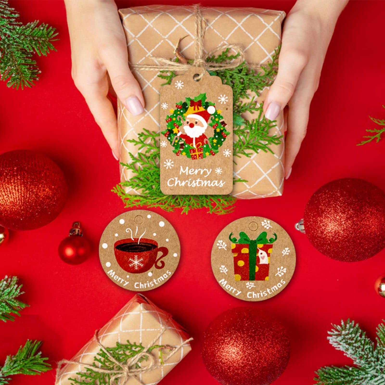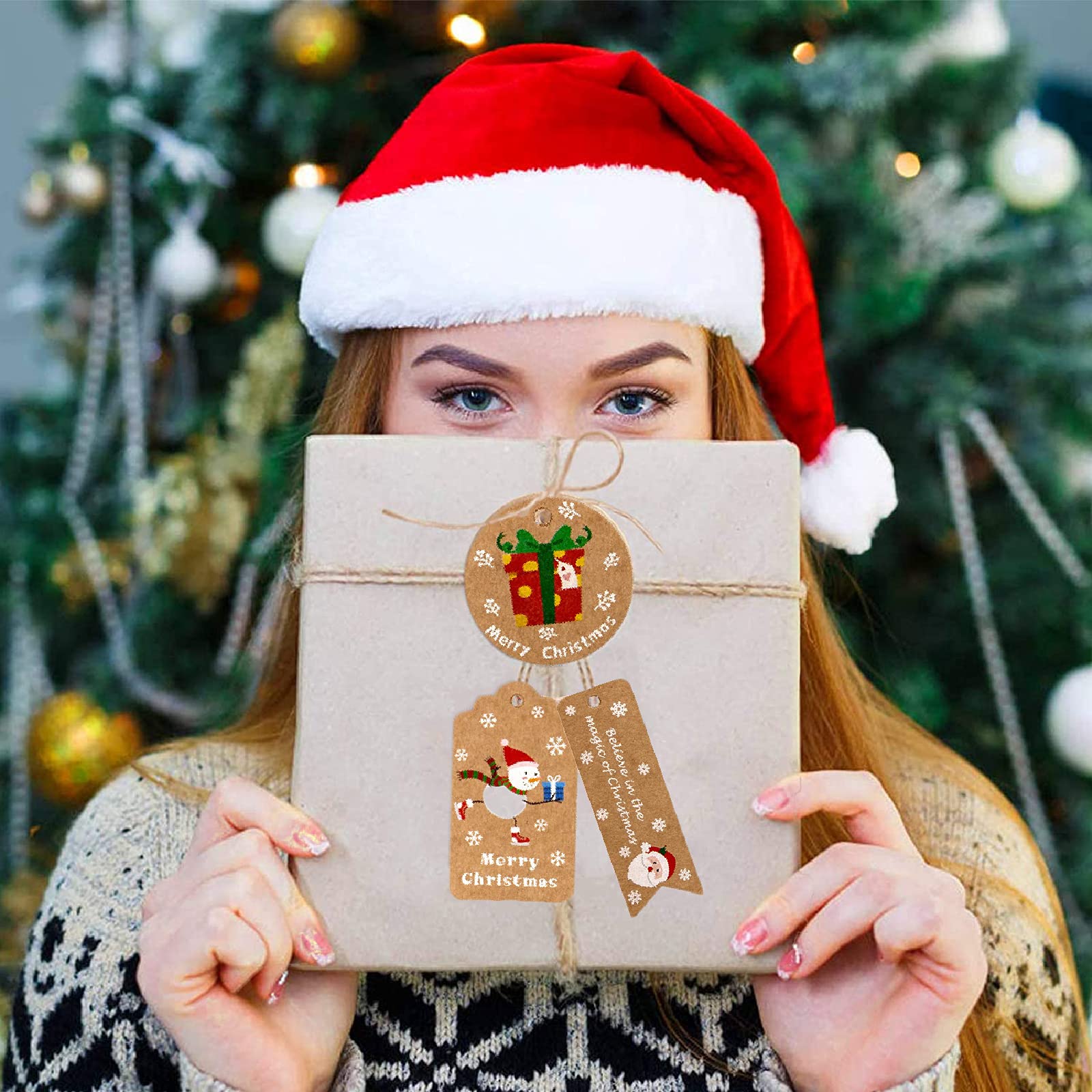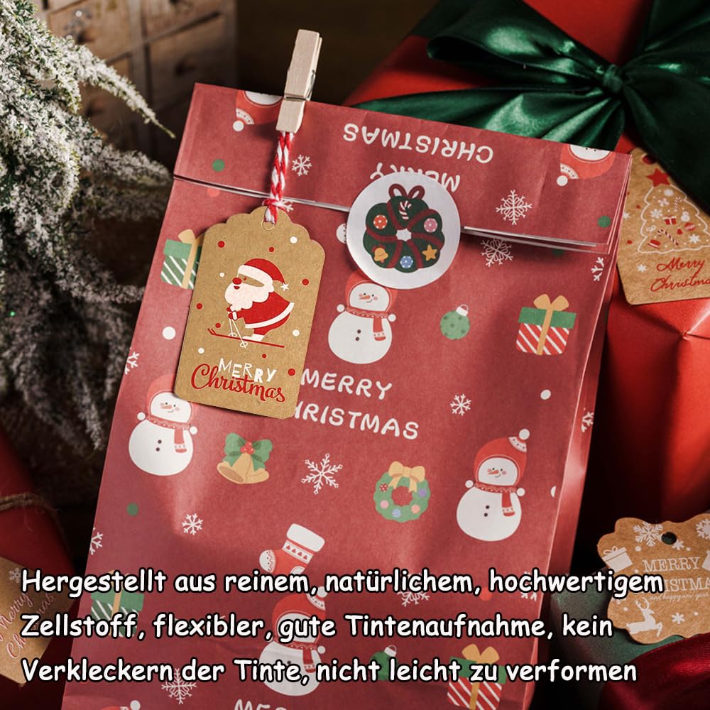 Hey, Weihnachtsfan! Dieses Set mit 100 Geschenkanhängern aus Kraftpapier ist genau das Richtige für deine Weihnachtsgeschenke. Die Anhänger haben total süße Weihnachtsmotive - da findest du Schneemänner, Rentiere, Weihnachtsbäume und sogar den Weihnachtsmann selbst! Auf der Vorderseite steht 'Frohe Weihnachten' und die Rückseite ist leer, damit du persönliche Grüße draufschreiben kannst. Das Papier ist richtig stabil mit 300g Stärke, also nichts mit billigem Papier! Im Set sind sogar 50 Baumwollseile und 50 Juteseile dabei - super praktisch, denn so musst du nicht extra Schnur kaufen. Die Löcher sind schon vorgepresst, also einfach das Seil durchziehen, zubinden und fertig ist die Weihnachtsdeko! Perfekt nicht nur für Geschenke, sondern auch als Baumschmuck oder für Weihnachtskarten. Ob für die Familienfeier, die Weihnachtsparty im Büro oder einfach nur für dich zu Hause - mit diesen Anhängern machst du jedes Geschenk etwas besonderes. Und das Beste: Du hast gleich 100 Stück, also reicht's für alle deine Geschenke! Die klassische Braun-Tönung vom Kraftpapier sieht einfach zeitlos schön aus und passt zu jedem Weihnachtsdeko-Stil.