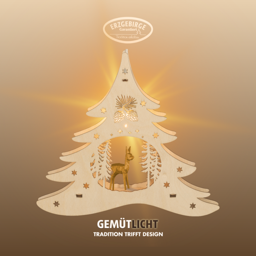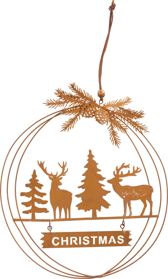 • Weihnachtsanhänger Gold 18cm - Fensterbild Mit Rehen & Tannenbaum