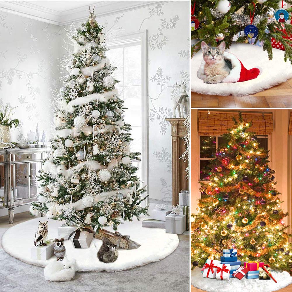 Oh, wie weihnachtlich! Dieser weiße Plüsch-Baumrock verwandelt deinen Weihnachtsbaum in ein richtiges Kunstwerk. Mit 90cm Durchmesser passt er perfekt zu den meisten Bäumen. Die handgenähten silbernen Pailletten-Schneeflocken glitzern wunderschön im Kerzenlicht und zaubern eine märchenhafte Atmosphäre. Die drei Klettverschlüsse machen die Montage super einfach - einfach um den Baumstamm legen und zuknöpfen, fast unsichtbar! Nach Weihnachten einfach zusammenfalten und fürs nächste Jahr aufbewahren. Perfekt für Zuhause, Büros, Geschäfte oder Schulen - überall wo Weihnachtsstimmung aufkommen soll. Der hochwertige Plüsch fühlt sich nicht nur luxuriös an, sondern versteckt auch den langweiligen Baumständer. Deine Gäste werden begeistert sein!