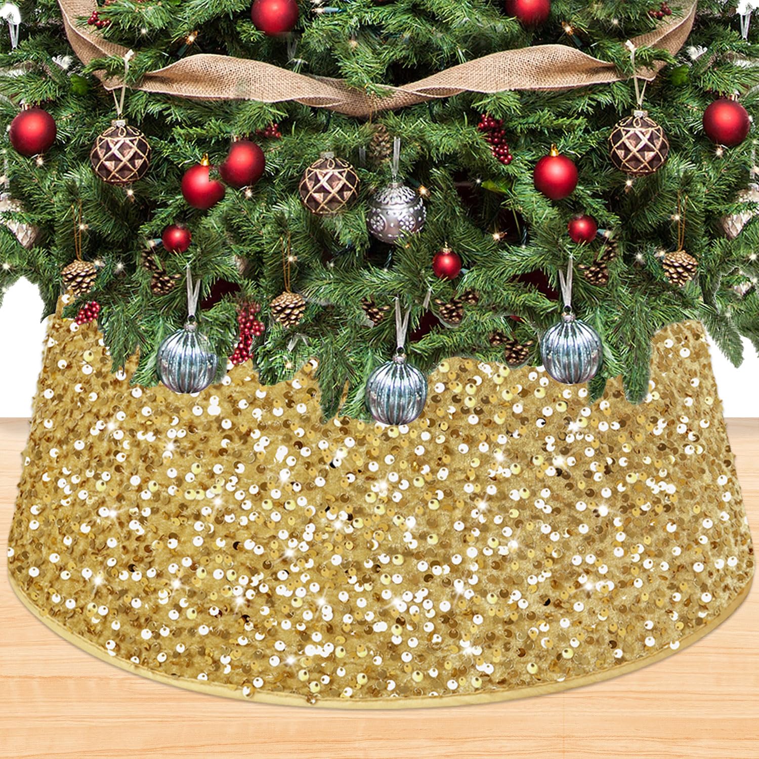 • Weihnachtsbaum Rock Pailletten - Baum Basis Abdeckung Schwarz Gold Größe S