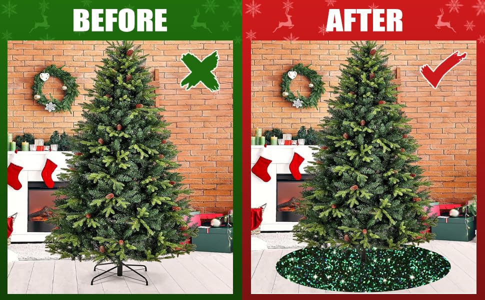 Mach deinen Weihnachtsbaum zum absoluten Hingucker! Dieser schwarze Baumrock aus weichem Samt mit glitzernden 5mm Pailletten ist einfach traumhaft. Mit 91,4cm Durchmesser perfekt für Bäume von 1,2 bis 1,8 Meter. Versteckt unschöne Ständer, Kabel und Drähte - alles sieht picobello aus! Einfach mit Haken und Schlaufen um den Baumstamm befestigen - fertig ist die Weihnachtsdekoration. Ideal für Wohnzimmer, Büro, Hotel oder überall wo Weihnachtsstimmung aufkommen soll. Handwäsche in kaltem Wasser - kein Bleichen! Langlebig und wiederverwendbar für viele Weihnachtsfeste. Schafft eine elegante und festliche Atmosphäre. Die Pailletten reflektieren das Licht der Lichterkette wunderschön. Perfekt für Halloween, Thanksgiving und natürlich Weihnachten. Einfach ausrollen, um den Baum legen und sich an der magischen Stimmung erfreuen - weihnachtlicher geht's kaum!