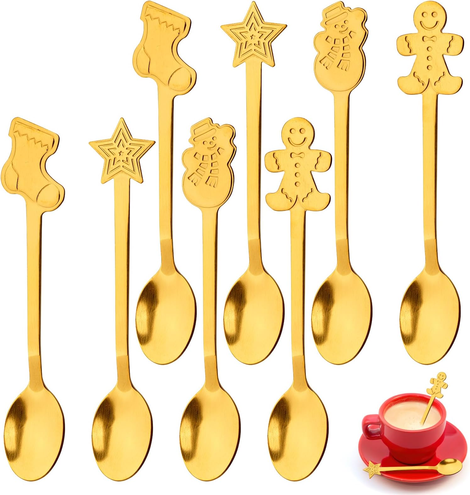 Festliche Stimmung für deinen Weihnachtstisch! Dieses 6-teilige Löffel-Set mit süßen Weihnachtsanhängern bringt Weihnachtszauber auf jeden Tisch. Jeder Löffel (13,5x2,4cm) aus rostfreiem 18/8 Edelstahl hat ein charmantes Motiv: Weihnachtsstiefel, Rentier, Tannenbaum, Kranz, Santa Claus und Glocke. Spülmaschinengeeignet und in einer hübschen Geschenkbox verpackt. Perfekt für Kaffee, Desserts, Suppen oder als festliche Rührstäbchen. Ein ideales Geschenk für Familie, Freunde oder Kollegen!