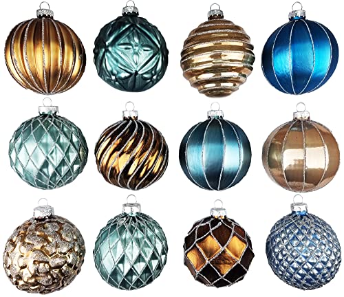 • My-goodbuy24 Weihnachtskugeln Set - 12 Handbemalte Glaskugeln 6cm Für Tannenbaum