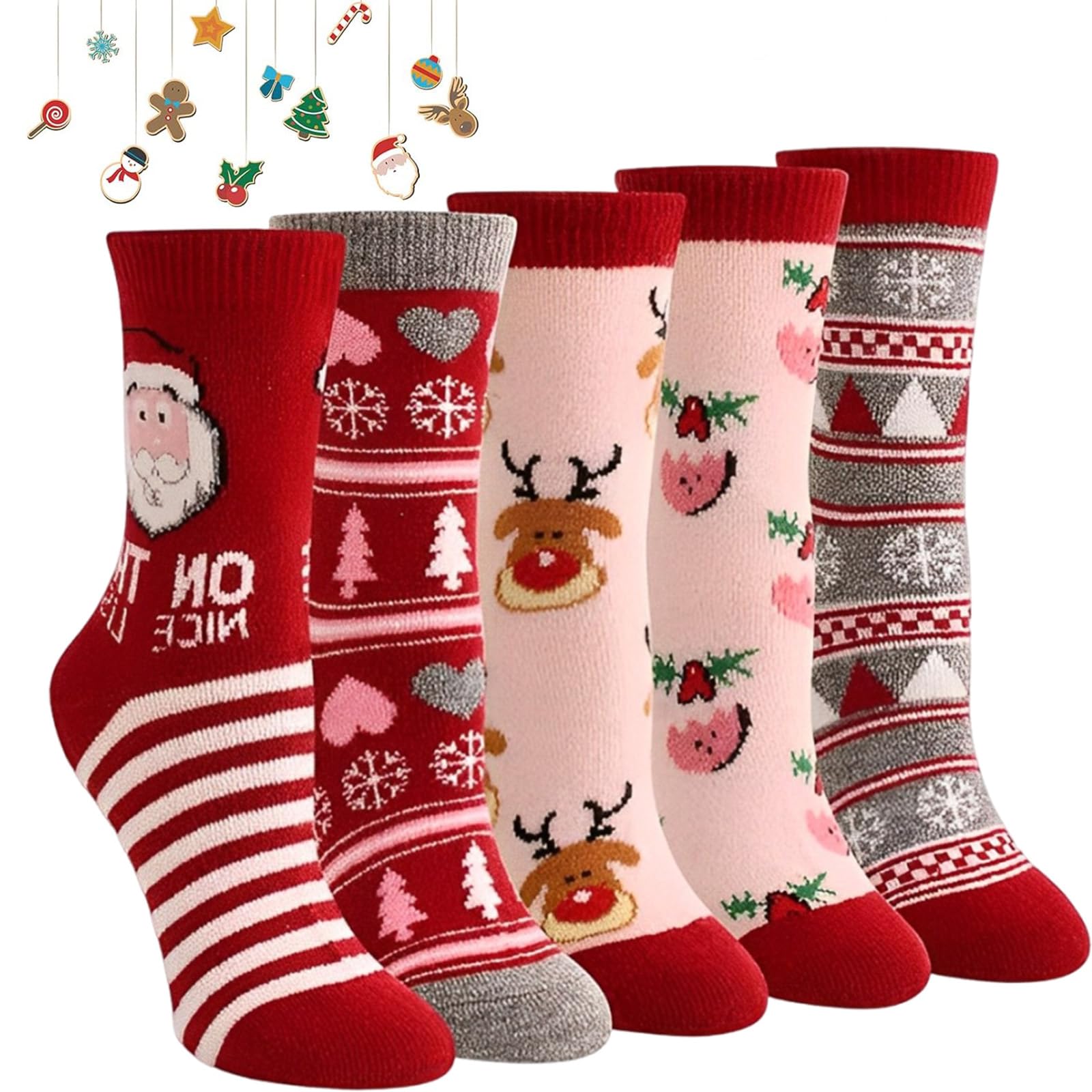 Super süße Weihnachtssocken für die ganze Familie! Im 4er-Set mit lustigen Motiven wie Weihnachtsbaum, Schneeflocken, Lebkuchenmann und Weihnachtsmann. In klassischen Weihnachtsfarben Rot, Grün und Braun. Passt für Größen 36-44 dank hoher Elastizität. Aus weicher Baumwolle - kratzt nicht und hält schön warm. Perfekt für gemütliche Weihnachtsabende auf dem Sofa, als Büro-Hingucker oder unter dem Weihnachtspullover. Ideal als Geschenk für Familie, Freunde oder Kollegen. Macht jede Weihnachtsfeier noch gemütlicher! Einfach anziehen und Weihnachtsstimmung genießen.