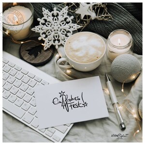 Wie niedlich ist denn dieser Weihnachtsstempel! 'Ein frohes Fest!' in hübscher Handschrift mit einem kleinen Baum - perfekt für die Weihnachtsbastelzeit.