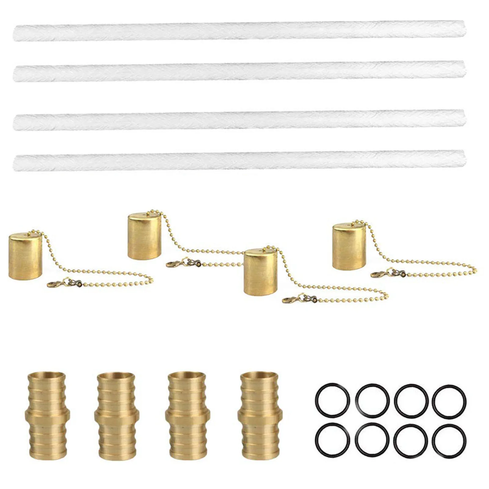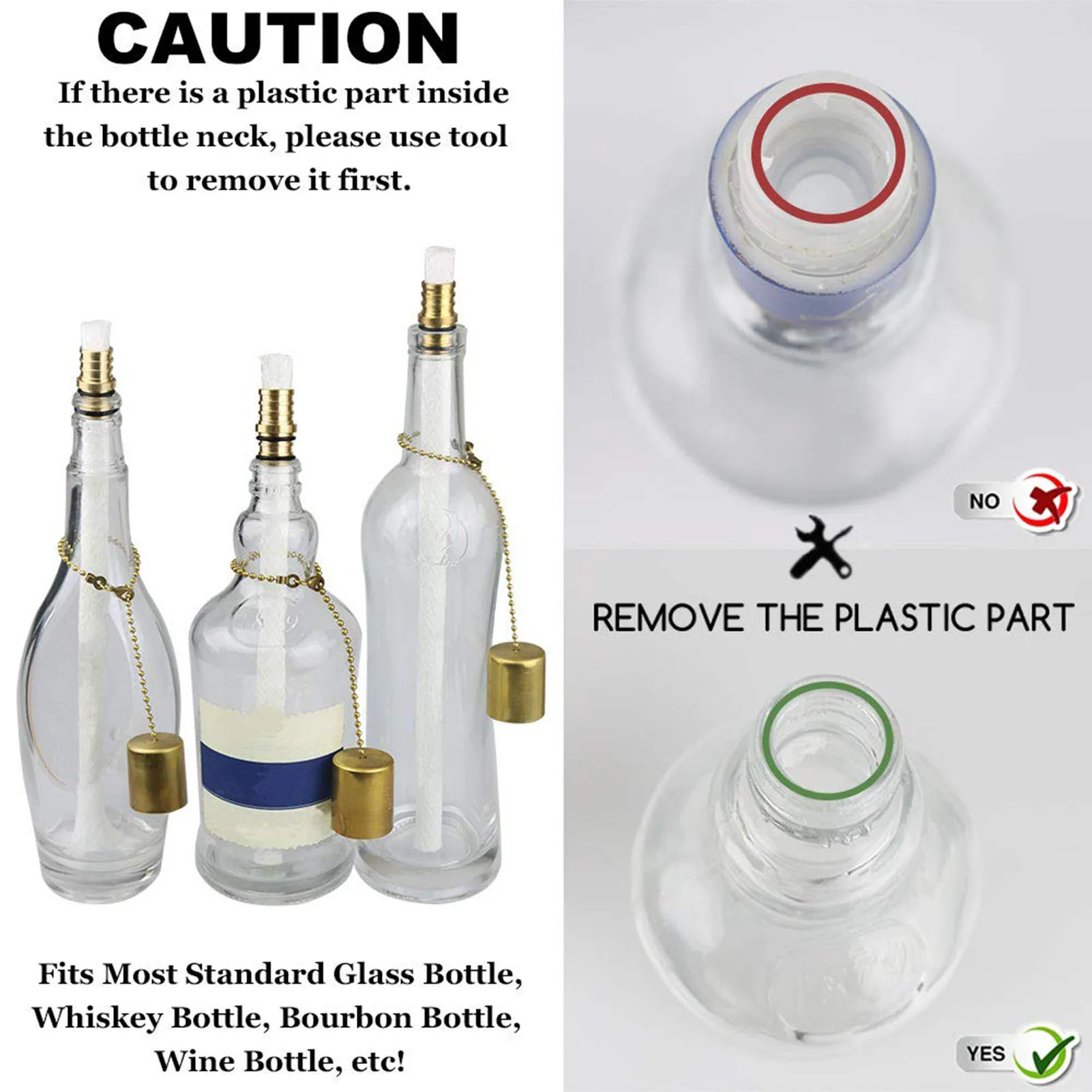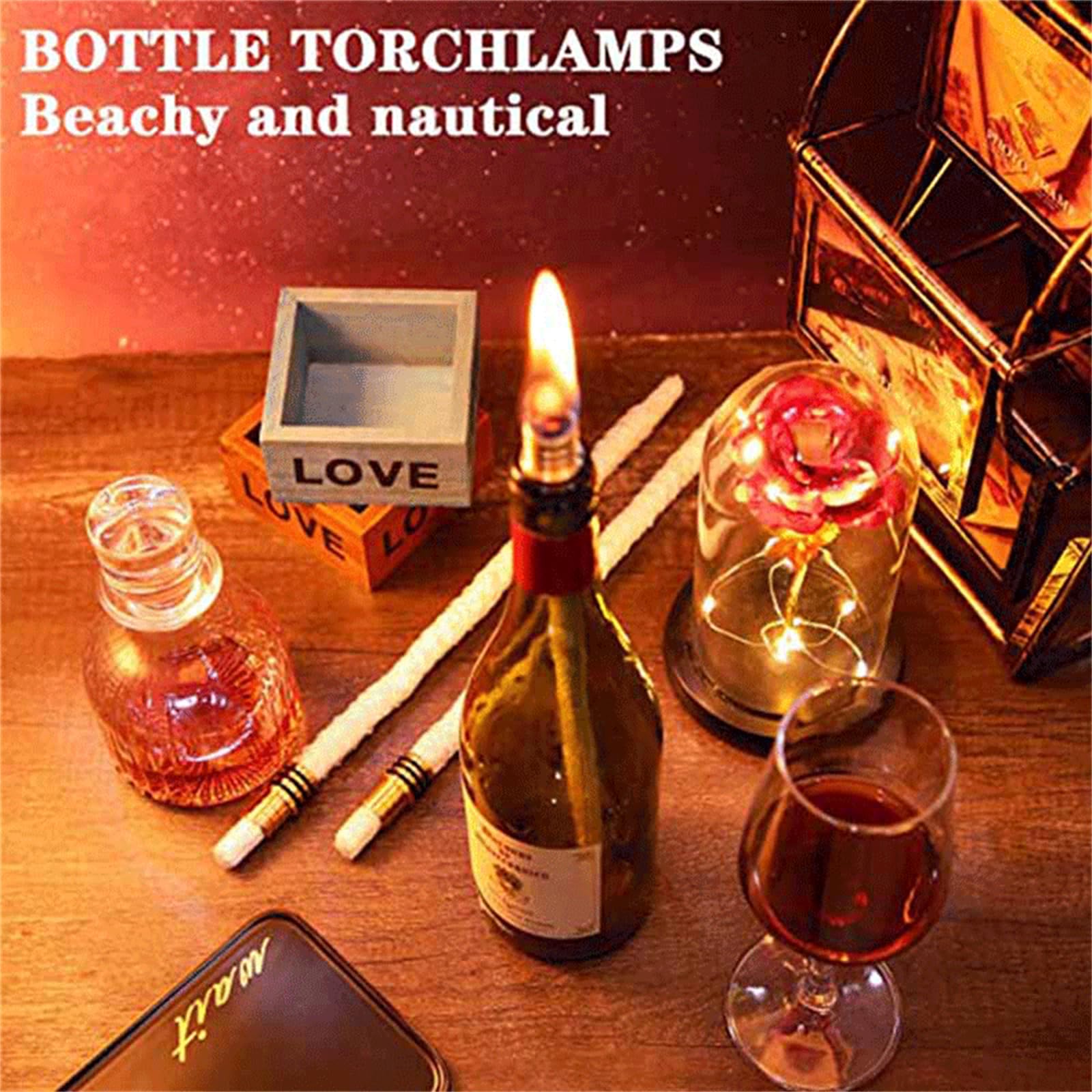 Verwandle leere Weinflaschen in stimmungsvolle Fackeln! Dieses Set enthält 10 Fiberglas-Ersatzdochte (26,7 cm) plus 2 Messinghalter mit Kappen. Die Dochte aus gewebtem Fiberglas sind geruchsneutral, saugen Öl optimal auf und brennen lange. Einfach in den Halter stecken, in die Flasche stellen und anzünden. Perfekt für Garten, Terrasse, Partys oder romantische Abende. Passt in die meisten Standard-Wein- und Whiskyflaschen. Mit den 10 Dochten hast du lange Freude an deinen selbstgemachten Fackeln. Schafft eine wundervolle Atmosphäre - dein Garten wird zum Lichtermeer. Einfach, effektvoll und dekorativ!