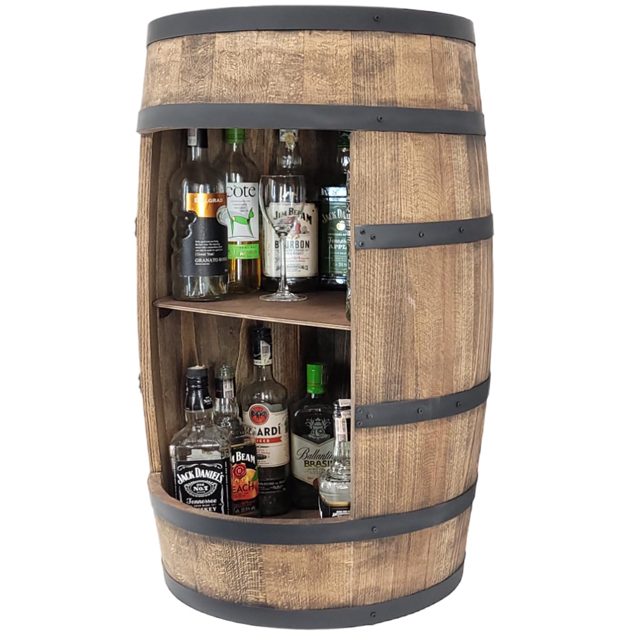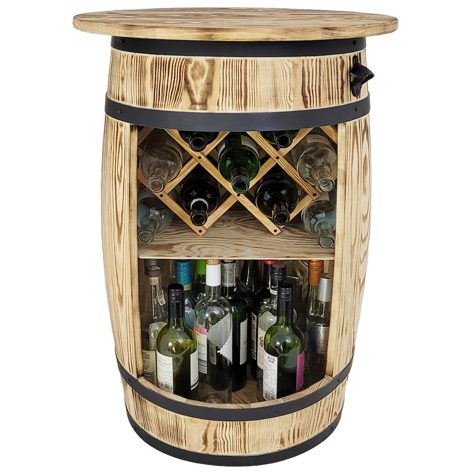 Wow - dieses Weinregal in Fassform ist echt ein Hingucker! Aus massivem Kiefernholz (2 cm stark) und mit Flammeneffekt behandelt, sieht es urig-rustikal aus. Die vier Metallreifen geben zusätzlichen Halt und Industrial-Flair. In dem Teil finden 30-40 Flaschen Platz - plus Zubehör wie Gläser und Co. Oben ist eine große Ablagefläche (55 cm Durchmesser) - perfekt zum Abstellen und Servieren von Getränken. Praktisch: Der klappbare Flaschenhalter für 6-7 Flaschen ist im Lieferumfang. Und an der Seite ist ein Flaschenöffner - alles da, was man für eine gemütliche Runde braucht! Die Türen sind doppelflügelig - guter Zugriff auf den Innenraum. Stil passt zu Loft, Vintage, rustikal oder skandinavisch. Kein Aufbau nötig - einfach hinstellen und loslegen. Maße: 80 cm hoch, 55 cm Durchmesser oben. Ob im Wohnzimmer, in der Küche oder sogar im Büro - mit diesem Barschrank holst du dir Bar-Atmosphäre nach Hause. Einfach genial für Weinliebhaber und alle, die es gemütlich mögen!