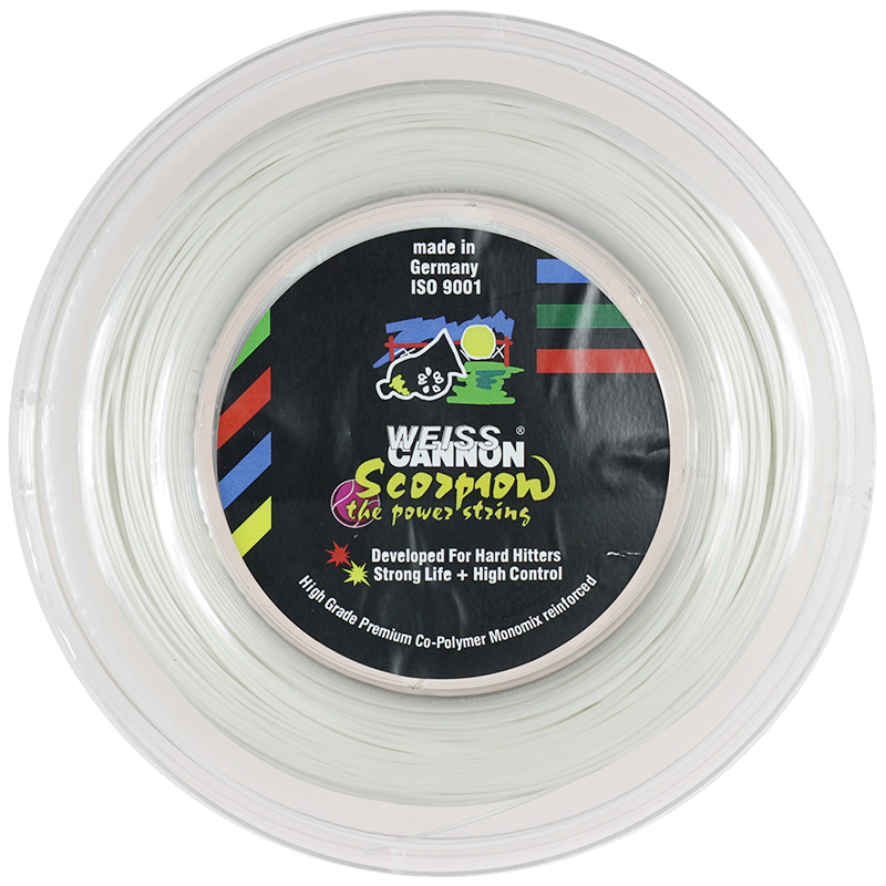 Tennisspieler, aufgepasst! Das Weiss Cannon Scorpion Saitenset bringt dein Spiel auf das nächste Level. Aus flexiblem Co-Polyester gefertigt, bietet es dir maximalen Komfort und ein super Ballgefühl. Die Saite ist besonders weich und nachgiebig, sodass dein Arm auch bei langen Matches nicht so schnell müde wird. Trotzdem bringst du damit jede Menge Power auf den Platz - die Ballgeschwindigkeit ist einfach genial! Ob du nun ein Hobbyspieler bist oder regelmäßig Turniere spielst: Mit diesen Saiten machst du nichts falsch. Die 12 Meter Rolle reicht für mehrere Besaitungen, je nachdem wie dein Schläger gespannt ist. In klassischem Weiß sieht sie zudem noch richtig professionell aus. Also: Alte Saiten raus, neue Scorpion-Saiten rein und ab auf den Court!