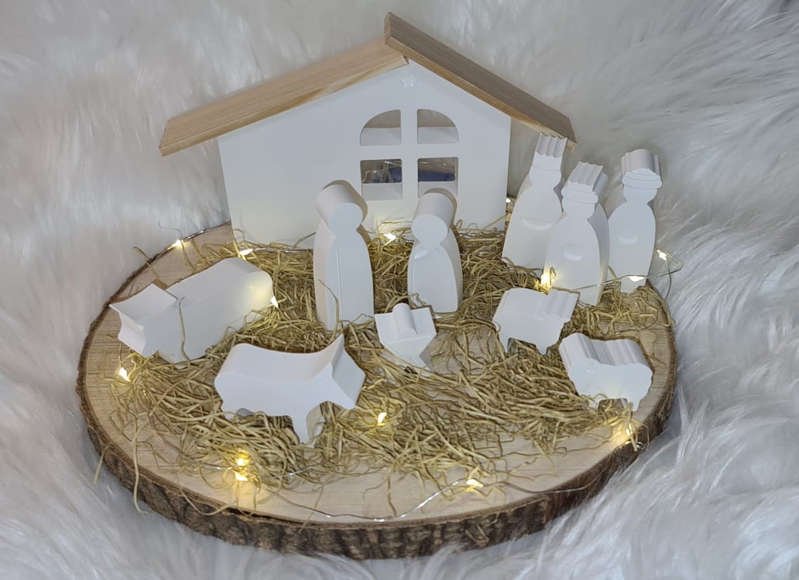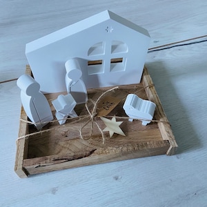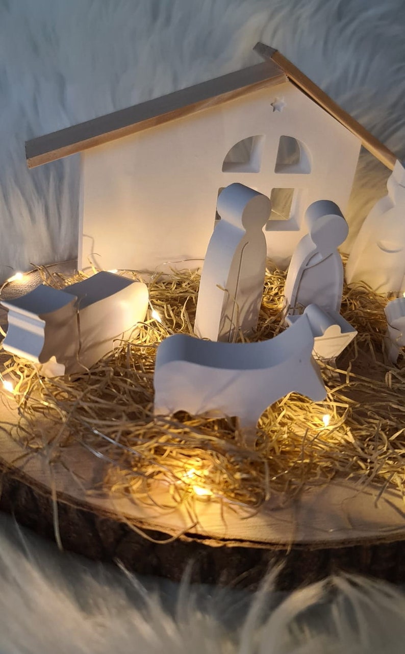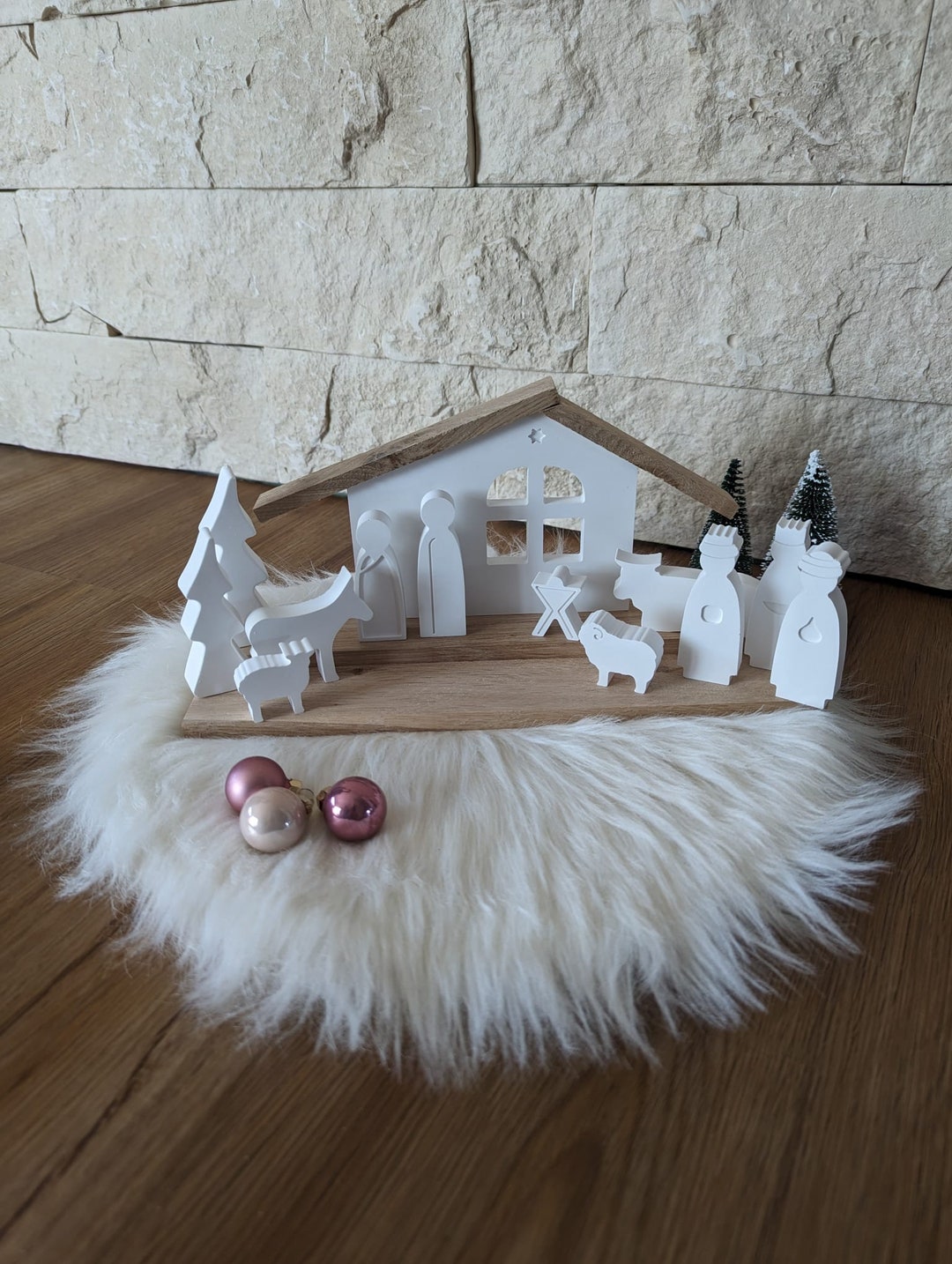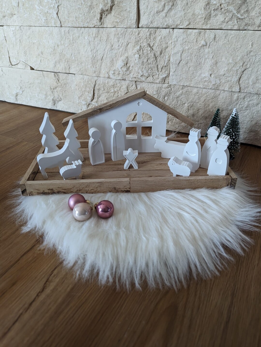 • Weihnachtskrippe 22x15cm Weiss - Handbemalt Aus Kunstharz