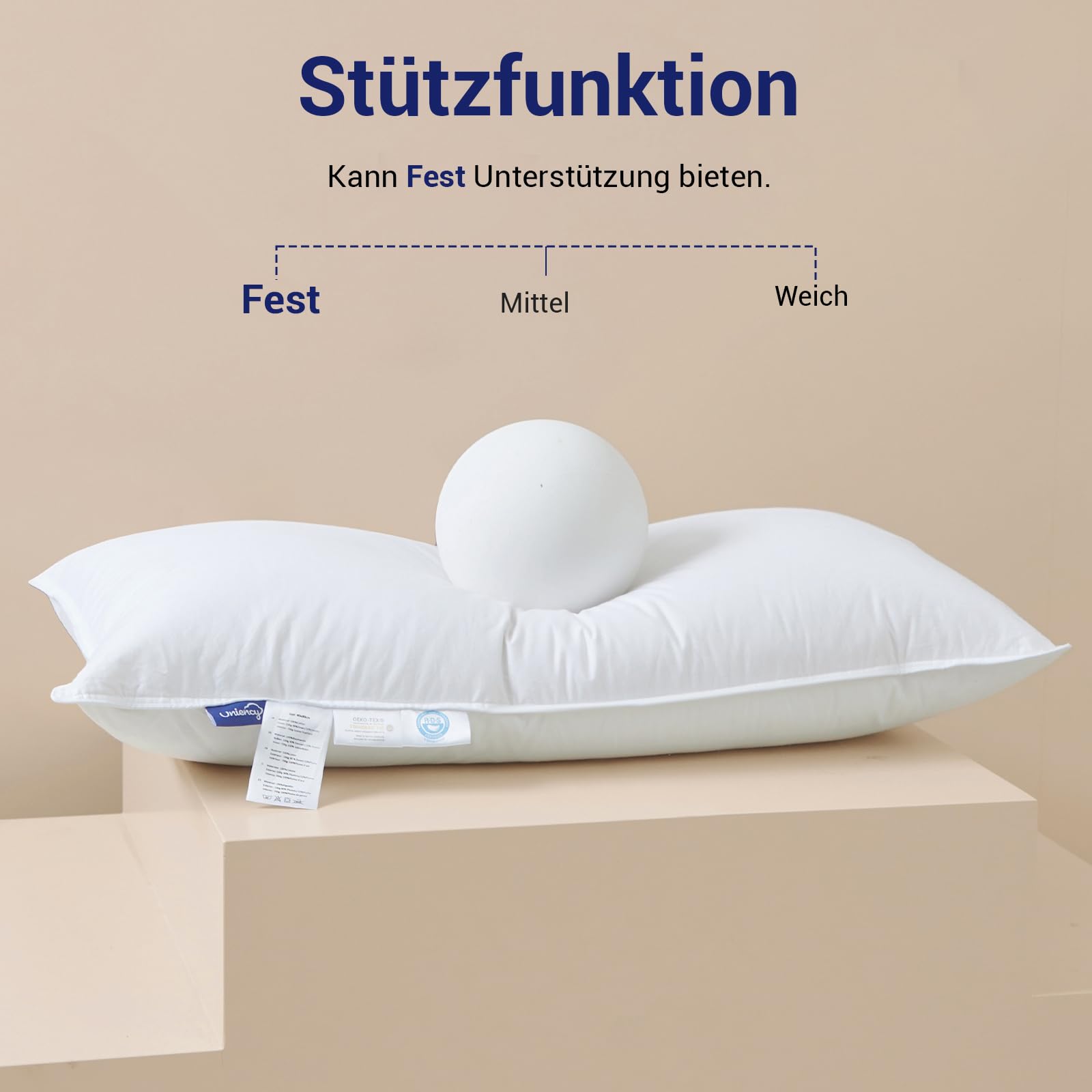 Puh, auf diesem Kissen schläfst du wie auf Wolken! Das Welt der Träume Daunenkissen in 80x80cm mit stolzen 700g Füllung gibt deinem Kopf die perfekte Stütze, egal ob du auf dem Rücken, der Seite oder dem Bauch schläfst. Die Daunen-Federn-Mischung ist super luftig und leicht, aber trotzdem kuschelig weich. Als reines Naturprodukt ist es atmungsaktiv - Feuchtigkeit wird super aufgenommen und abtransportiert, sodass du nicht verschwitzt aufwachst. Die erstklassige Wärmeisolierung hält dich im Winter warm und im Sommer angenehm kühl. Inklusive Baumwollbezug aus 100% Baumwolle, und wichtig: Kein Lebendrupf! Auch für Allergiker geeignet und maschinenwaschbar. Ein Kissen, das jahrelang hält und jede Nacht für erholsamen Schlaf sorgt. Gönn dir was - guter Schlaf ist doch das Beste!