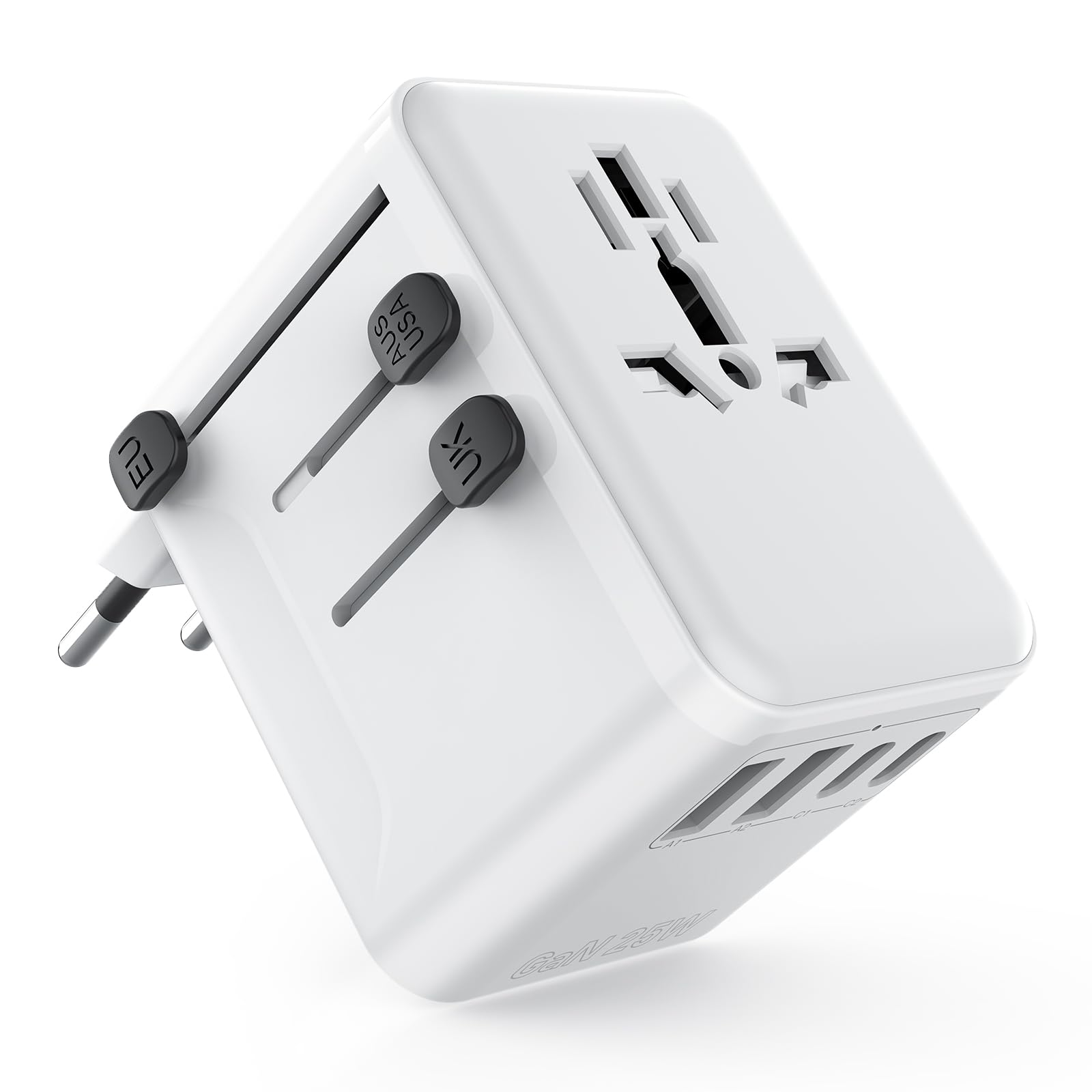 Der perfekte Begleiter für deine Reisen! Dieser All-in-One Adapter passt in über 224 Länder - von USA über UK bis Australien. Mit 2 USB-C (20W) und 2 USB-A Anschlüssen plus einer AC-Steckdose lädst du bis zu 5 Geräte gleichzeitig. Kompakt und leicht (145g) für jeden Koffer. Eingebaute 10A Sicherungen schützen vor Überhitzung. Kompatibel mit allen Dual-Voltage Geräten (100-250V). Einfach den passenden Stecker ausklappen und los geht's! Nie wieder Probleme mit unterschiedlichen Steckdosen im Urlaub. CE, FCC und ROHS zertifiziert für maximale Sicherheit.