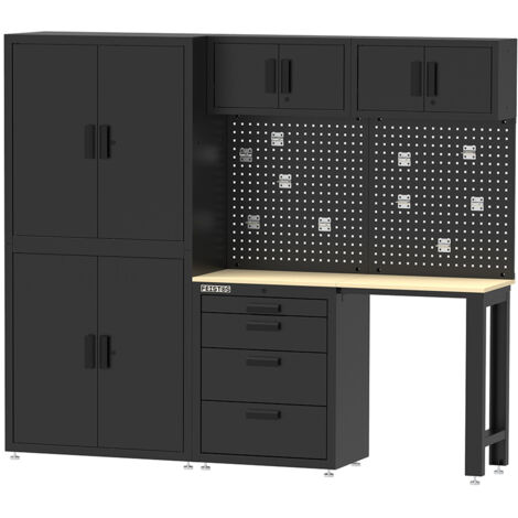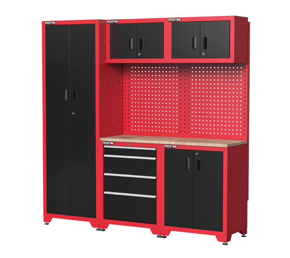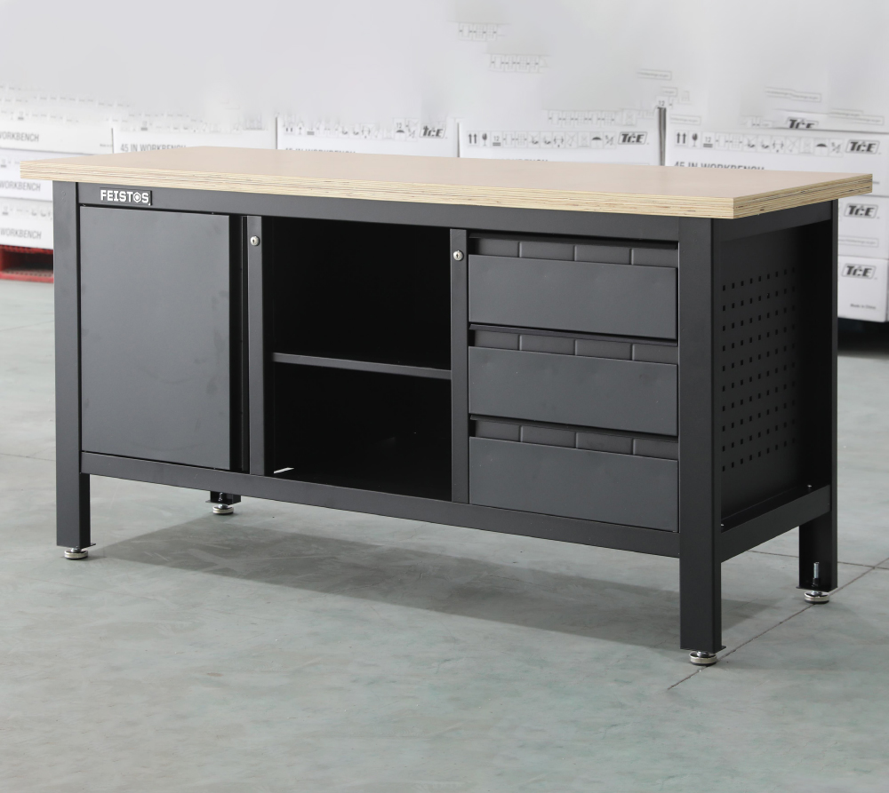 Endlich Ordnung in der Werkstatt! Der FEISTOS Monos ist Deine Kommandozentrale für alle Projekte. Stabiler Stahlkorpus mit pulverbeschichteter Oberfläche - hält was aus. Die Multiplex-Arbeitsplatte nimmt auch grobe Behandlung nicht übel. Mit Lochwand und 8 Haken für Werkzeug - alles griffbereit. Abschließbar, damit Dein Equipment sicher ist. Höhenverstellbar für optimale Arbeitshöhe. Schwarz sieht einfach professionell aus. Vom Heimwerker bis zum Profi - hier findet alles seinen Platz!