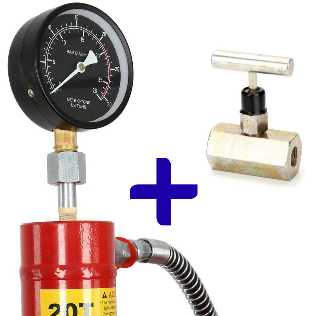 Für alle Heimwerker und Profis: Diese Carmax Werkstattpresse mit 20 Tonnen Druckkraft meistert auch die härtesten Aufgaben! Die Hydraulikpumpe hat einen Doppelantrieb - entweder mit Druckluft (ca. 8 Bar) oder manuell per Kolbenpumpe. So bist du flexibel in jeder Situation. Im Lieferumfang ist alles dabei, was du brauchst: Hydraulikzylinder, Manometer, Montageplatte und beide Schläuche (Öl und Druckluft). Die Presse ist für den vertikalen Einsatz konzipiert und hat einen maximalen Hub von 180mm. Mit ISO 32 oder 46 Hydrauliköl betriebsbereit - schon gefüllt! Das rote Design sieht nicht nur gut aus, sondern ist auch super robust. Ob Lager wechseln, Teile pressen oder reparieren - mit dieser Presse bist du bestens ausgestattet für deine Werkstatt-Projekte!