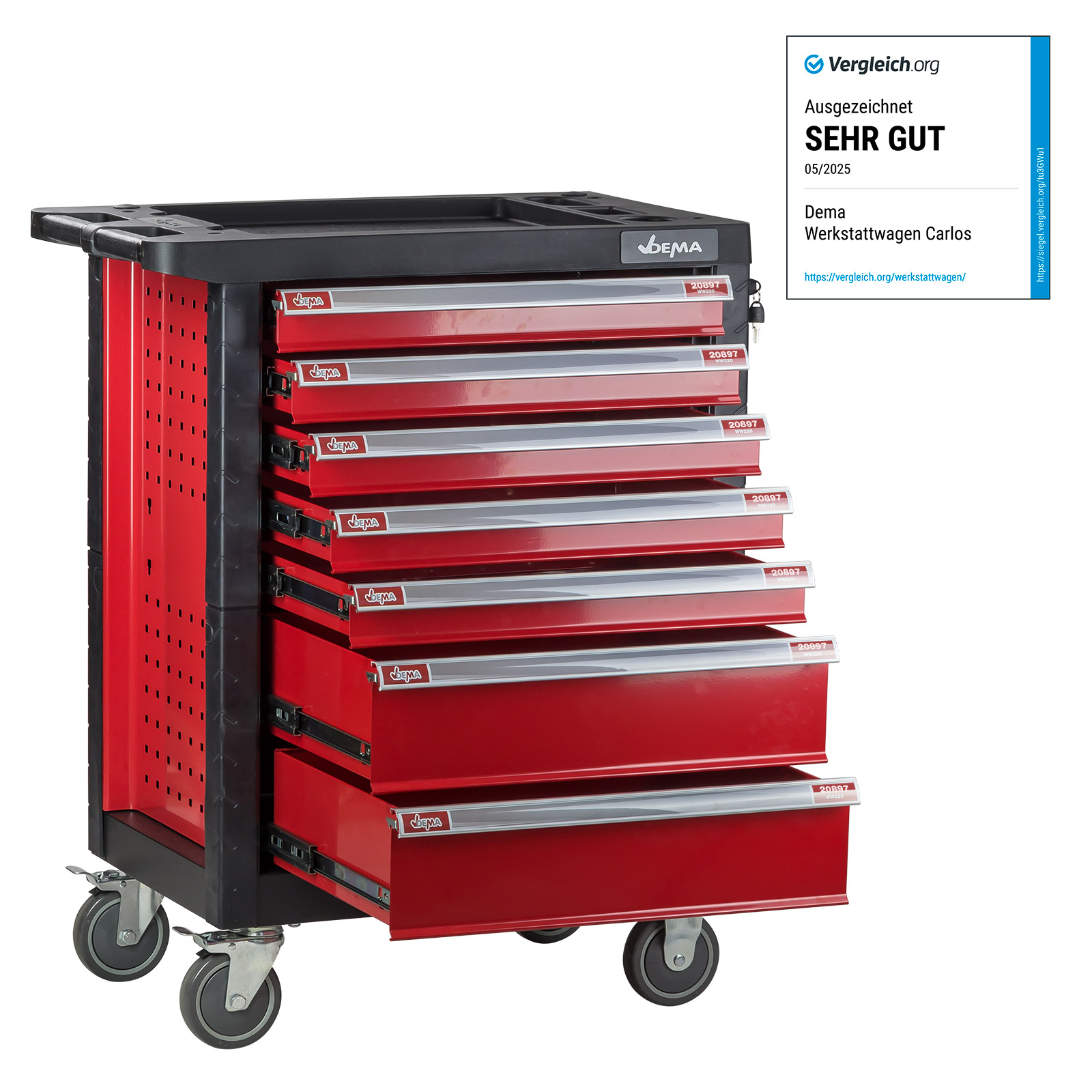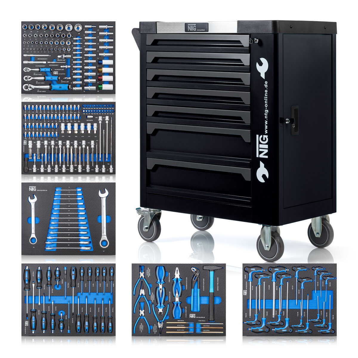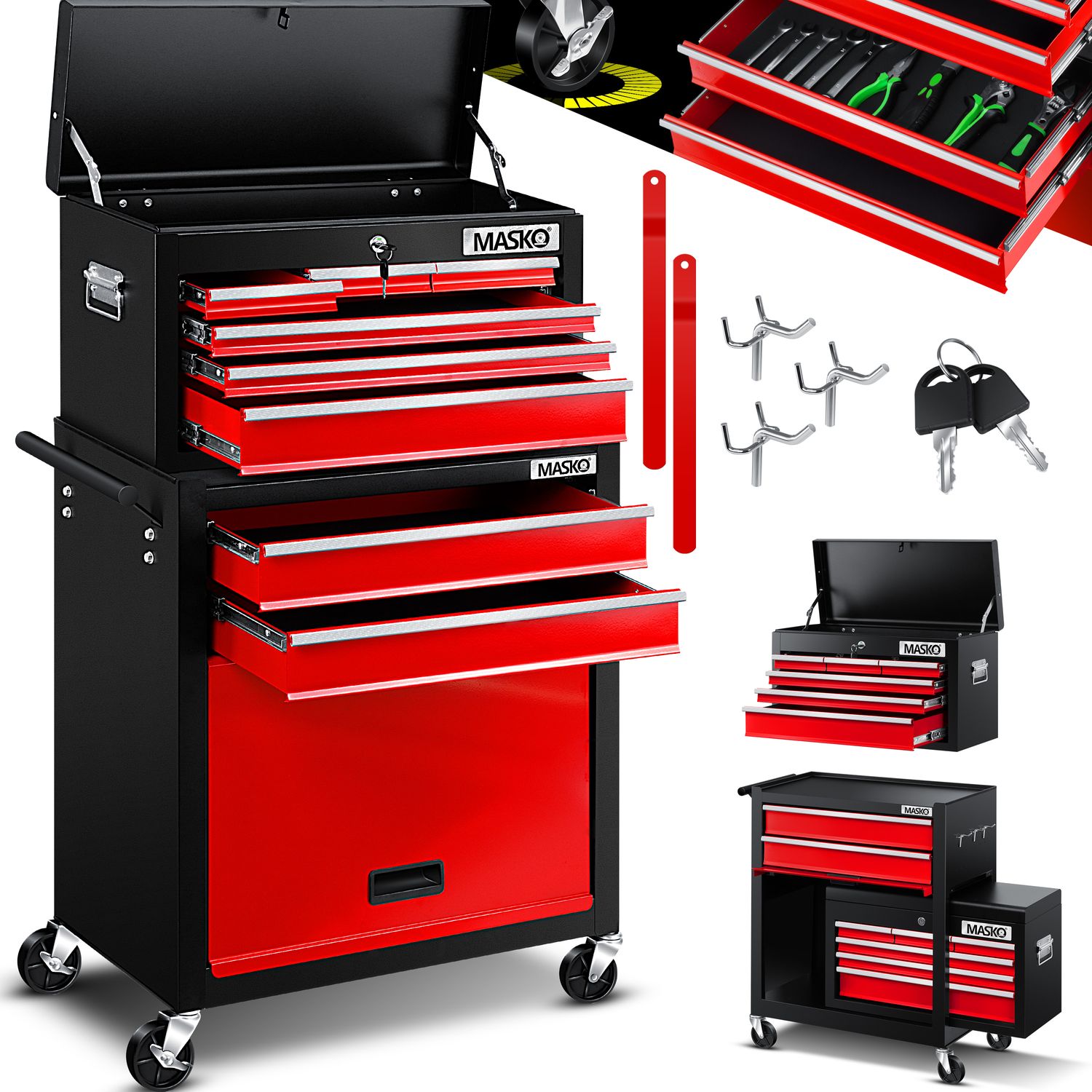 Ordnung im Chaos! Der LEADZM Werkstattwagen ist dein neuer bester Freund in Garage oder Werkstatt. Das geniale 2-in-1-Design: Oberkoffer abnehmbar und platzsparend im Unterschrank verstaut. Mit 4 großen Schubladen und strukturierten Werkzeugeinsätzen findest du alles sofort. Die Schubladen gleiten super leise auf I-förmigen Vollauszugschienen - selbst bei voller Belastung bis 100 kg! Die 4 robusten Räder (2 mit Feststellbremse) machen ihn super mobil. Rutschfeste Polster schützen deine Werkzeuge vor Beschädigungen. Mit Zentralverriegelung für mehr Sicherheit (Schloss separat). Aus stabilem Stahl mit kratzfester Pulverbeschichtung - hält jahrelang! Maße: 55x32x68 cm - passt auch in kleinere Werkstätten. Endlich alles griffbereit und ordentlich sortiert! Ohne Werkzeuge - du füllst ihn nach deinen Bedürfnissen.