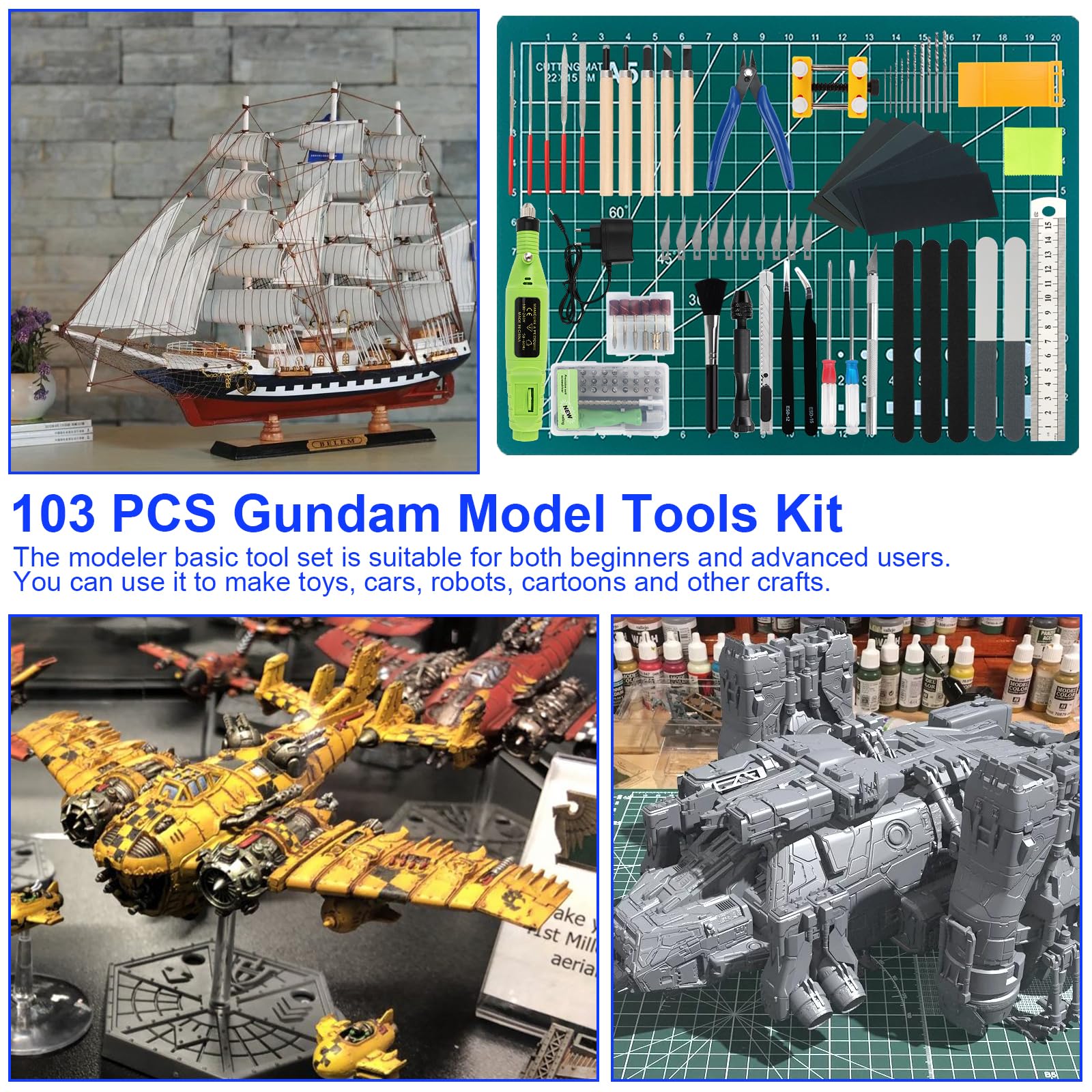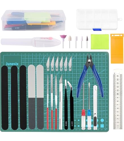 Egal ob Gundam, Panzer oder Flugzeuge - mit diesem 11-teiligen Werkzeug-Set von QLOUNI bist du perfekt ausgestattet! 🛠️ Enthalten ist alles, was du brauchst: Schneidezange für saubere Schnitte, Bleistiftspitzer mit Ersatzklingen, zwei Pinzetten (gerade und gebogen), Staubtuch, Formöffner, drei Schleifstangen in verschiedenen Stärken (1000#, 1500#, 2000#) und eine Diamantfeile für Feinarbeiten. 💪 Alles aus hochwertigen Materialien - die Schneidzange aus Kohlenstoffstahl, Pinzetten aus rostfreiem Edelstahl. Perfekt für Anfänger und Fortgeschrittene! Kompakt und leicht - ideal zum Mitnehmen. Damit machst du deine Modelle perfekt, entgratest, schleifst und polierst wie ein Profi. Ein super Geschenk für alle Modellbau-Fans! Leg los und erschaffe dein Meisterwerk! ✨
