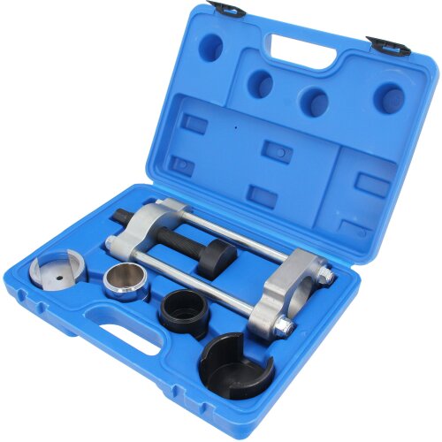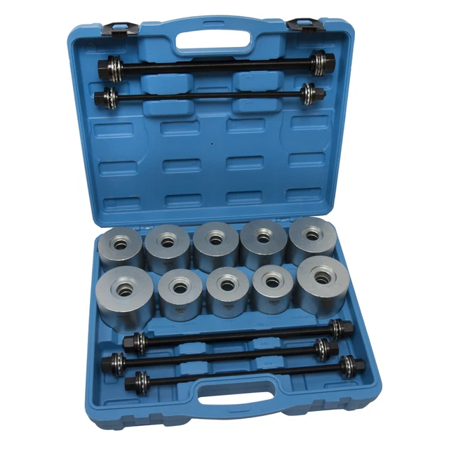Schrauber aufgepasst! Dieses 28-teilige Werkzeug-Set ist perfekt für alle, die Radlager, Silentblöcke oder Gummibuchsen wechseln wollen. Enthalten sind verschiedene Presshülsen in 20 Größen (von 36mm bis 72mm Innendurchmesser), vier Spindeln (M10, M12, M14, M16) und passende Unterlegscheiben. Alles aus robustem 45# Kohlenstoffstahl, gehärtet und mit Schwärzung behandelt - da rostet und korrodiert nichts so schnell! Die Kanten sind glatt und gratfrei, also keine Verletzungsgefahr. Perfekt für die Heimwerkstatt, Kfz-Werkstatt oder Hobby-Schrauber. Das Set kommt in einer praktischen Tragetasche mit Griff - so ist alles ordentlich verstaut und transportierbar. Damit kannst du Gummibuchsen präzise austauschen, ohne sie zu beschädigen. Einfach etwas Schmieröl auf die Spindel geben und los geht's! Wichtig: Nur für manuelle Nutzung, nicht für pneumatische Werkzeuge geeignet. Mit diesem Set machst du deine Auto-Reparaturen professioneller und einfacher!