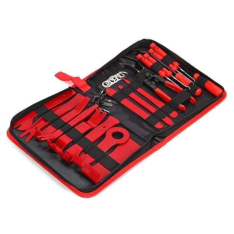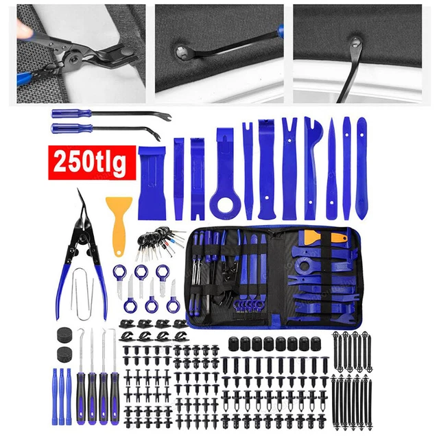 Besonders praktisch finde ich die U-Haken für Radios - kein Gefummel mehr beim Radioausbau. Und die mitgelieferten Clips sind super, wenn mal welche kaputt gehen. Alles kommt in einer robusten Tragetasche, sodass ihr immer Ordnung habt. Perfekt für Hobby-Schrauber und Profis gleichermaßen!