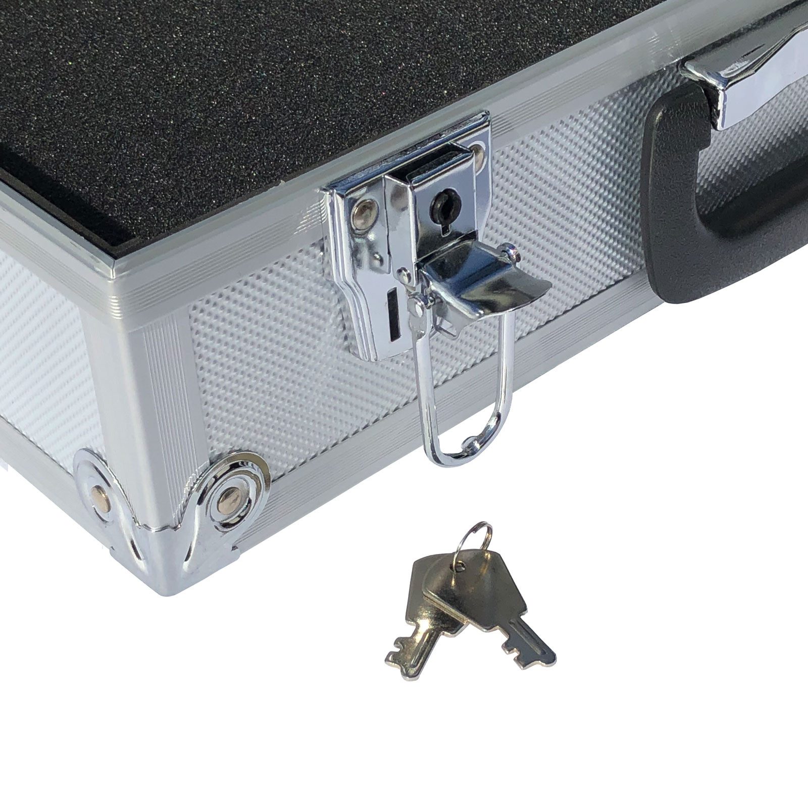 Dieser kompakte Alukoffer ist perfekt für dein wertvolles Equipment! Maße 25,5x16,5x9,5cm, aus robuster Aluminiumlegierung. Mit Schaumstoff-Innenlage und stoßsicheren Ecken schützt er deine Geräte optimal. Die Schnellverschlüsse und der stabile Griff machen ihn ideal für unterwegs. Super für Werkzeug, Kamera-Zubehör, Elektronik oder Messgeräte. Alles sicher verstaut und organisiert. Der Deckel bleibt im 90-Grad-Winkel offen - praktisch beim Arbeiten. Dein zuverlässiger Begleiter für Transport und Lagerung!
