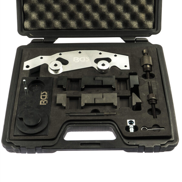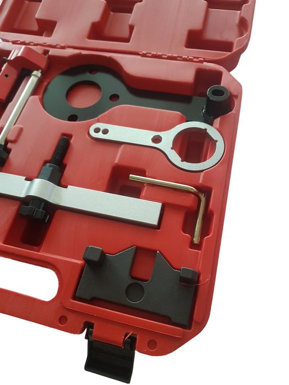 Professioneller Werkzeugsatz für deine BMW-Motorreparatur! Perfekt für Steuerketten- und Nockenwellen-Arbeiten an M40, M42, M43, M44, M50, M52, M54, M56 Motoren. Passt zu E60, E39, E46, E90 und E36 Modellen.\\n\\nEnthält alles was du brauchst: Nockenwellen-Fixierwerkzeug, Arretierwerkzeug, Kettenspannwerkzeug, Vanos-Schlüssel und mehr. Aus hochwertigem Kohlenstoffstahl für extreme Festigkeit.\\n\\nMit robustem Werkzeugkoffer (48x39x18 cm) für sichere Aufbewahrung. 6 kg Komplettset das dir Zeit und Nerven spart. Für präzise Einstellung ohne Rätselraten!\\n\\n• Für BMW M40-M56 Motoren\\n• Komplettset mit 7 Werkzeugen\\n• Material: Kohlenstoffstahl\\n• Inkl. Werkzeugkoffer\\n• Gewicht: 6 kg\\n• Für Steuerketten-Arbeiten\\n• Inkl. Handschuhe\\n• Professionelle Qualität