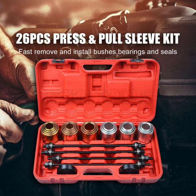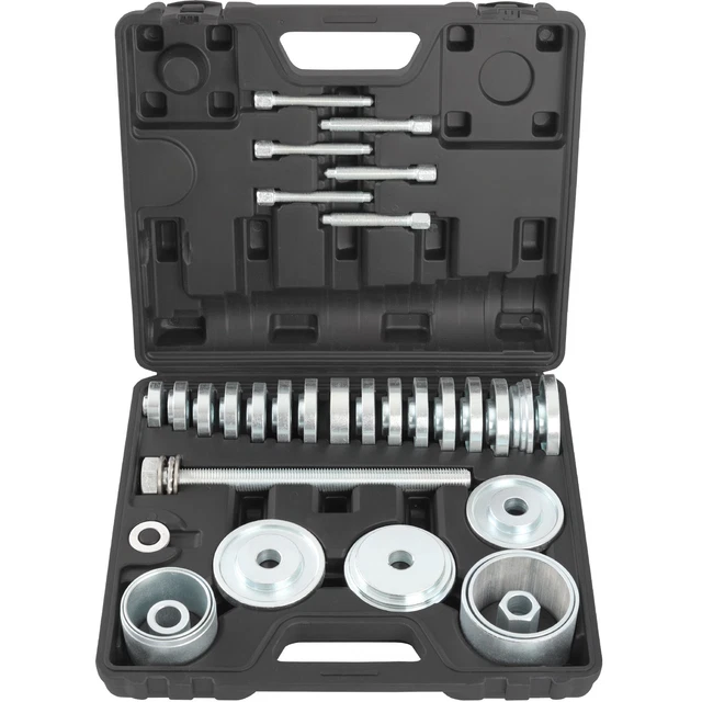 Das Beste: Du sparst dir ne Menge Zeit und Ärger beim Wechseln von Radlagern, Buchsen und Dichtungen. Alles ist aus robustem, verzinktem Stahl und kommt sicher verpackt im praktischen Transportkoffer. So hast du dein Werkzeug immer ordentlich beisammen. Einfach die Gewinde vorher gut fetten, dann läuft's wie geschmiert! Super für Hobby-Schrauber und Profis gleichermaßen.