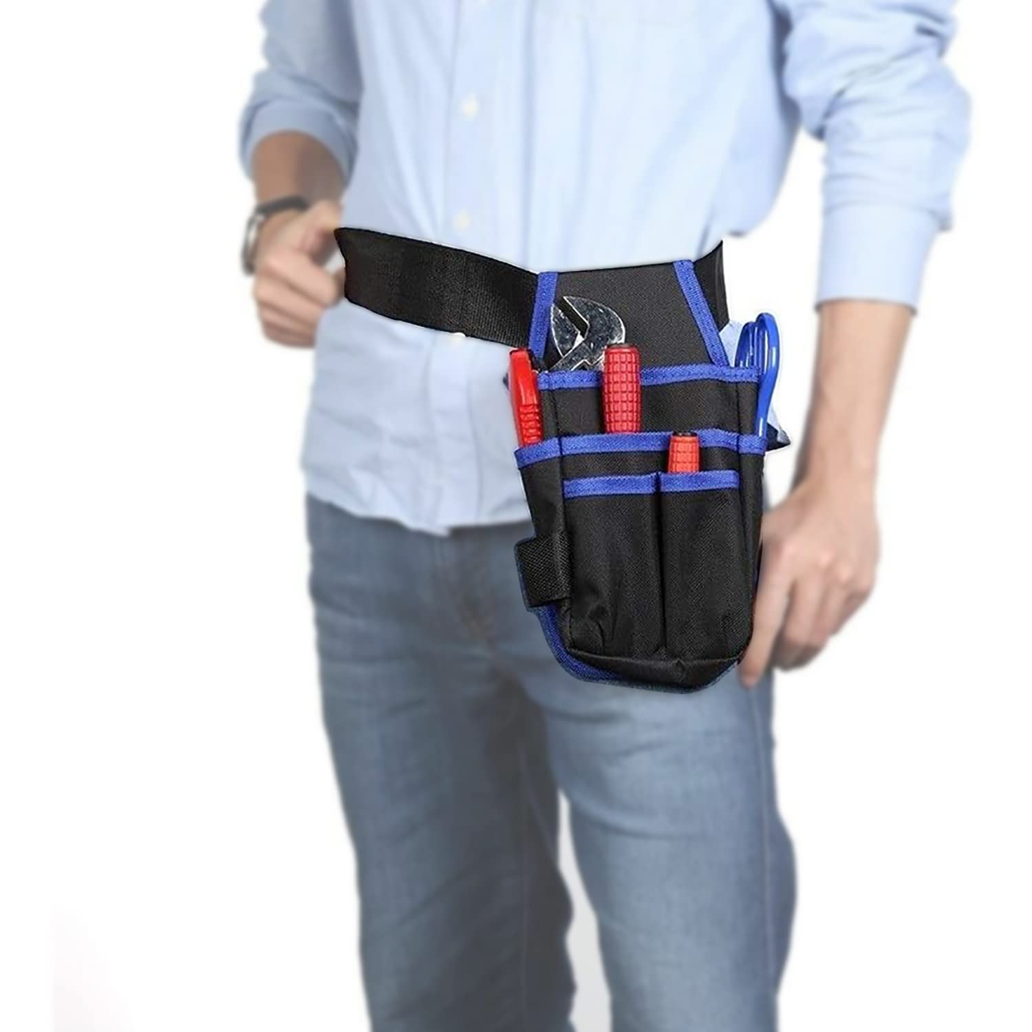 Alles griffbereit, wenn du es brauchst! Diese robuste Werkzeugtasche aus Canvas ist perfekt für Elektriker, Handwerker und Heimwerker. Mit verstellbarem Hüftgurt - sitzt bequem und deine Hände sind frei. Die Maße (28,5x19x5 cm) bieten genug Platz für dein wichtigstes Werkzeug. Aus strapazierfähigem Oxford-Stoff, der was aushält - auch auf rauen Baustellen. Mehrere Fächer und Taschen sorgen für Ordnung. Alles ist gut erreichbar, wenn du oben arbeitest oder in engen Räumen. Kein langes Suchen mehr - jedes Werkzeug hat seinen Platz! Perfekt für den täglichen Einsatz. Ob für Reparaturen zu Hause oder auf der Arbeit - diese Tasche wird dein treuer Begleiter. Endlich Ordnung im Werkzeug-Chaos!