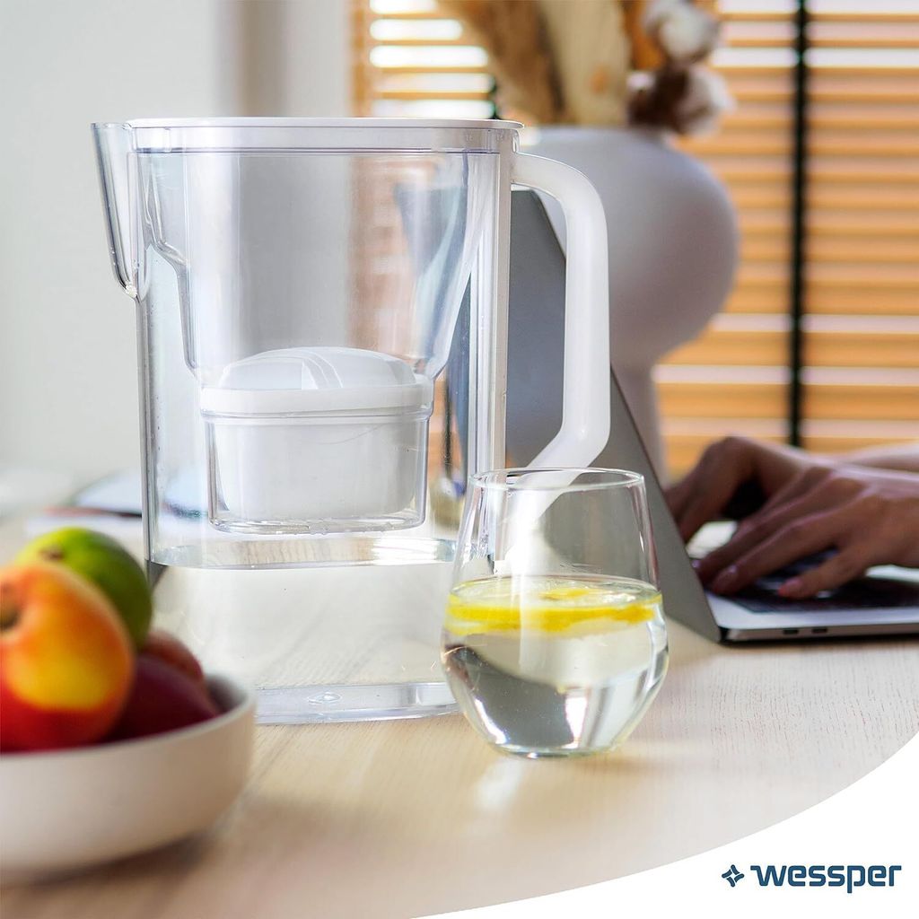 Genieße immer frisches, gefiltertes Wasser! Die Wessper Wasserfilterkanne mit 2,8 Liter Fassungsvermögen reduziert Kalk, Chlor und sorgt für besseren Geschmack. Kompatibel mit Brita Classic, Dafi Classic und eigenen Aqua Classic Filtern. Modernes Design in verschiedenen Farben - passt in jede Küche. Leicht und handlich, perfekt für den täglichen Gebrauch. Einfache Handhabung: Filter einsetzen, Wasser einfüllen, kurz warten - schon hast du leckeres Wasser! Umweltfreundlich aus recycelbarem Kunststoff. Praktisch für Familien, Singles oder im Büro - hol dir besseres Wasser ohne teure Geräte!