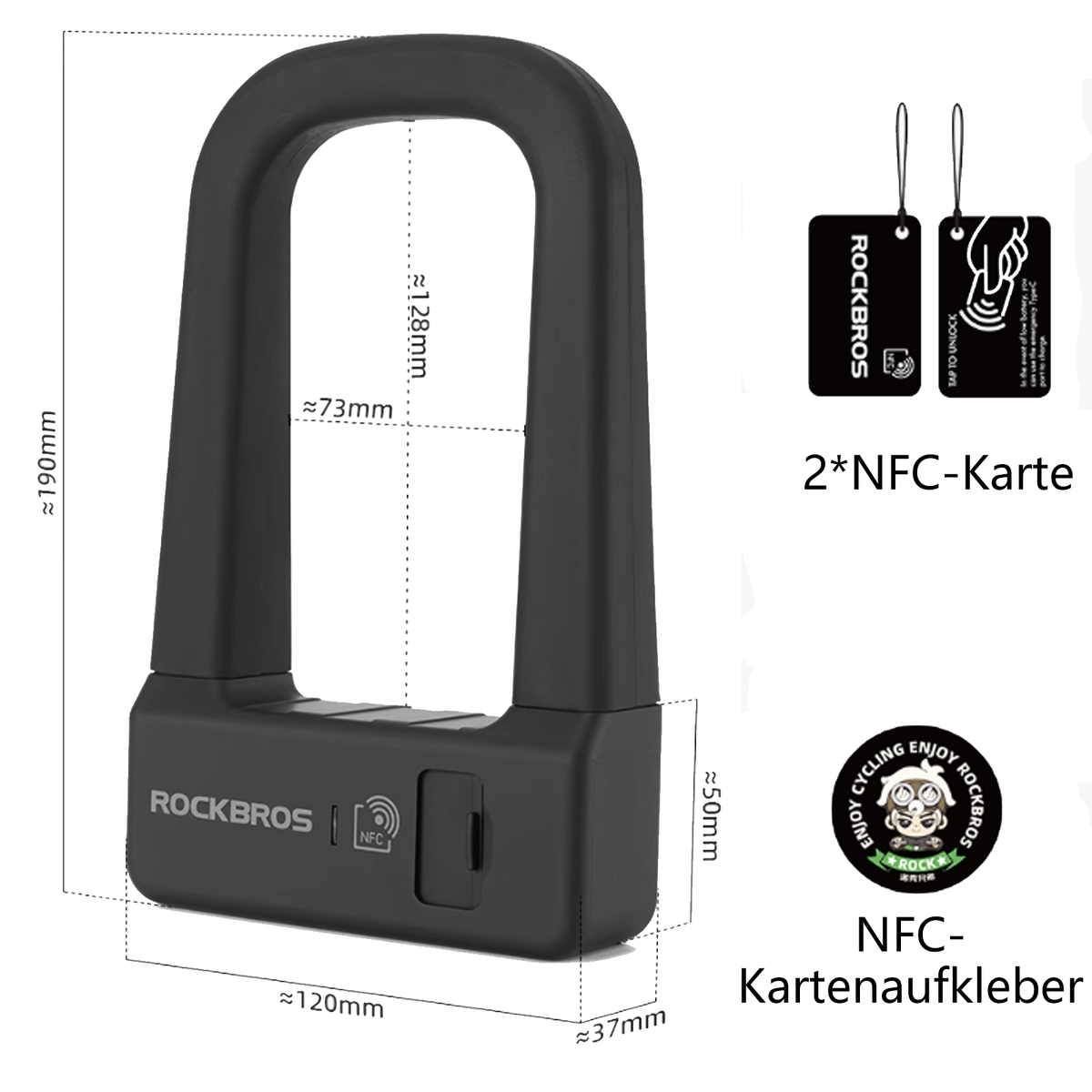 Wow, dieses Fahrradschloss ist echt smart! Mit NFC-Technologie entsperrst du es einfach per Smartphone - nur antippen und schon geht's auf. Falls dein Handy kein NFC hat, keine Sorge, es gibt auch NFC-Karten und Aufkleber dabei. Super praktisch, oder?