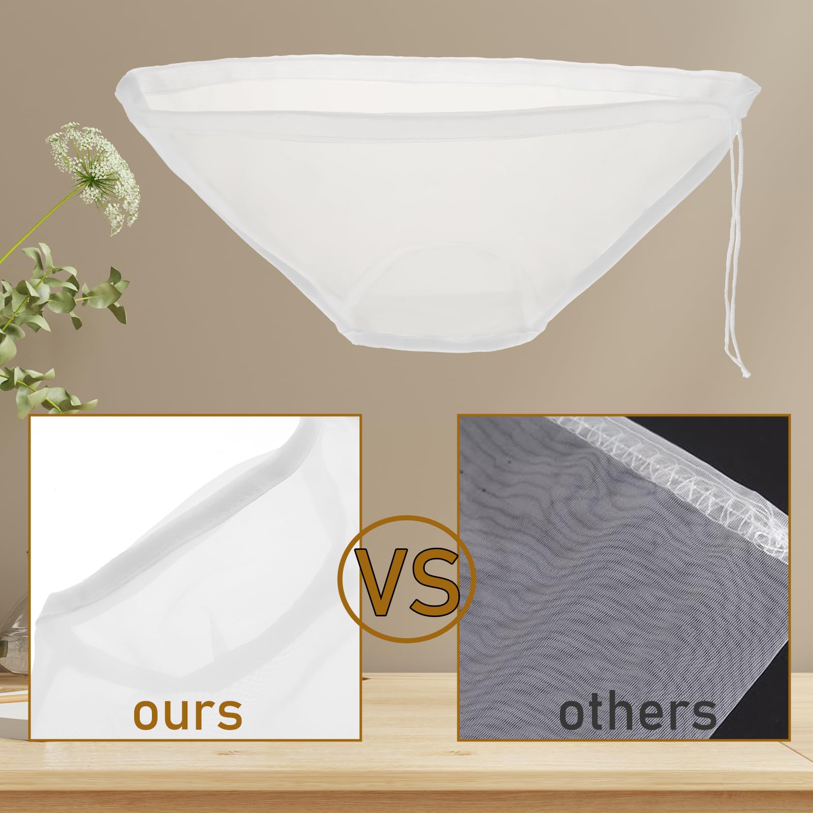 Der Alleskönner für Deine Küche! Diese 4 Nussmilchbeutel von Hayaww sind aus feinmaschigem, lebensmittelechtem Nylon - hitzebeständig und geruchsneutral. Das becherförmige Design mit breiter Öffnung und rundem Boden ermöglicht schnelles Filtern ohne Verschütten. Mit praktischem Kordelzug einfach zu schließen und aufzuhängen. Perfekt für Nussmilch, Sojamilch, Joghurt, Saft, Kaffee, Tofu und Suppen. Maschinenwaschbar, schnell trocknend und extrem langlebig - haltbarer als herkömmliche Gaze. Macht hausgemachte gesunde Getränke zum Kinderspiel!