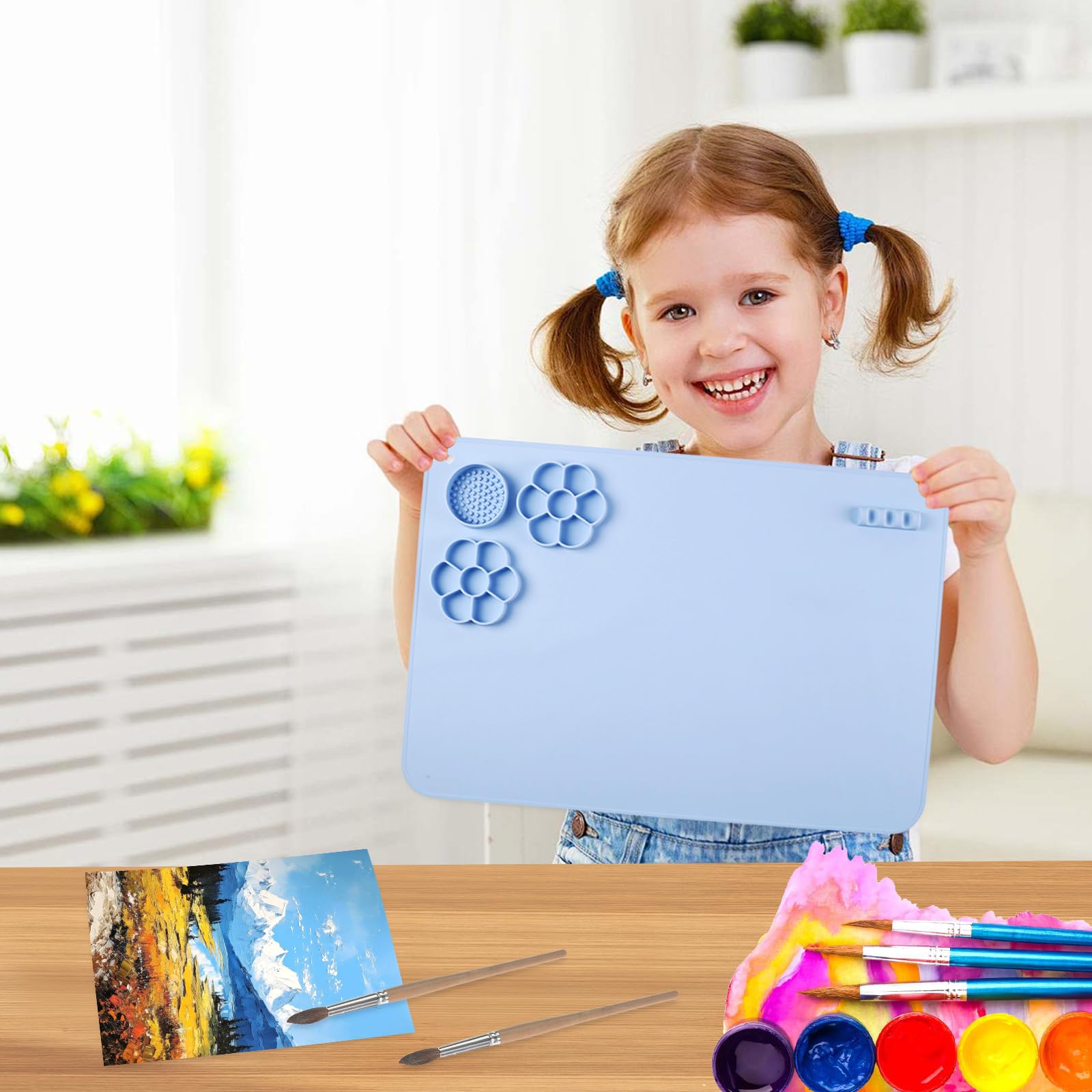 Die umweltfreundliche Silikonmatte ist komplett geruchsneutral und ohne BPA - also absolut sicher für Kinder. Die Antihaft-Oberfläche sorgt dafür, dass Farbe und Kleber einfach abzuwaschen sind.