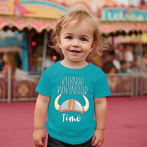 Oh, wie süß! Dieses Baby-T-Shirt mit dem niedlichen Wikinger-Motiv und Schwert ist perfekt für kleine Entdecker! Aus weichem 200 g/m² Interlock-Stoff aus 100% Baumwolle ist es super angenehm auf der empfindlichen Babyhaut. Mit nickelfreien Druckknöpfen an der Schulter lässt es sich leicht an- und ausziehen. Das Shirt gibt's in Größen von 0-36 Monaten - also für Neugeborene bis Kleinkinder. Der lustige \Kleiner Wikinger\-Spruch lädt zu fantasievollen Abenteuern ein! Perfekt als Geschenk zur Geburt, Taufe oder Babyparty. Und das Beste: Es ist maschinenwaschbar und behält auch nach häufigem Waschen Form und Farbe. So ist dein kleiner Wikinger immer stylisch unterwegs und kann nach Herzenslust toben und spielen! Einfach anziehen und ab geht das Abenteuer!
