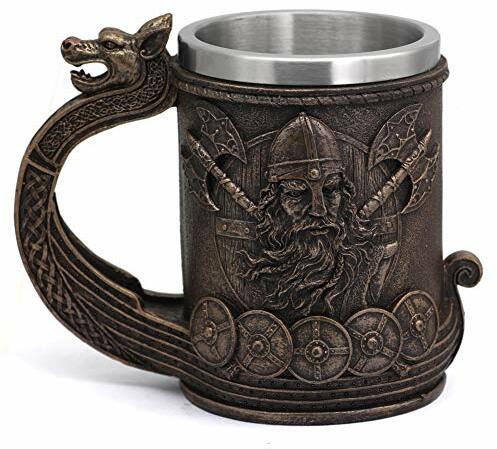 Fühl dich wie ein echter Nordmann! Dieser Wikinger-Humpenbecher aus Edelstahl und Kunstharz fasst stolze 600ml und hält dein Bier im Sommer kalt und im Winter warm. Mit handbemaltem Drachenschiff-Design und praktischem Drachengriff - jedes Stück ein Unikat! Maße: ca. 9,5x14,9x16,8cm, Gewicht 770g. Die 304-Edelstahl-Innenauskleidung ist absolut geschmacksneutral und robust. Perfekt für Mittelalter-Fans, Gothic-Partys oder als besonderes Geschenk zu Weihnachten, Geburtstag oder Vatertag. Ob für Met, Bier oder Whisky - mit diesem Becher wird jedes Getränk zum Abenteuer! Ein echter Hingucker für jede Feier!