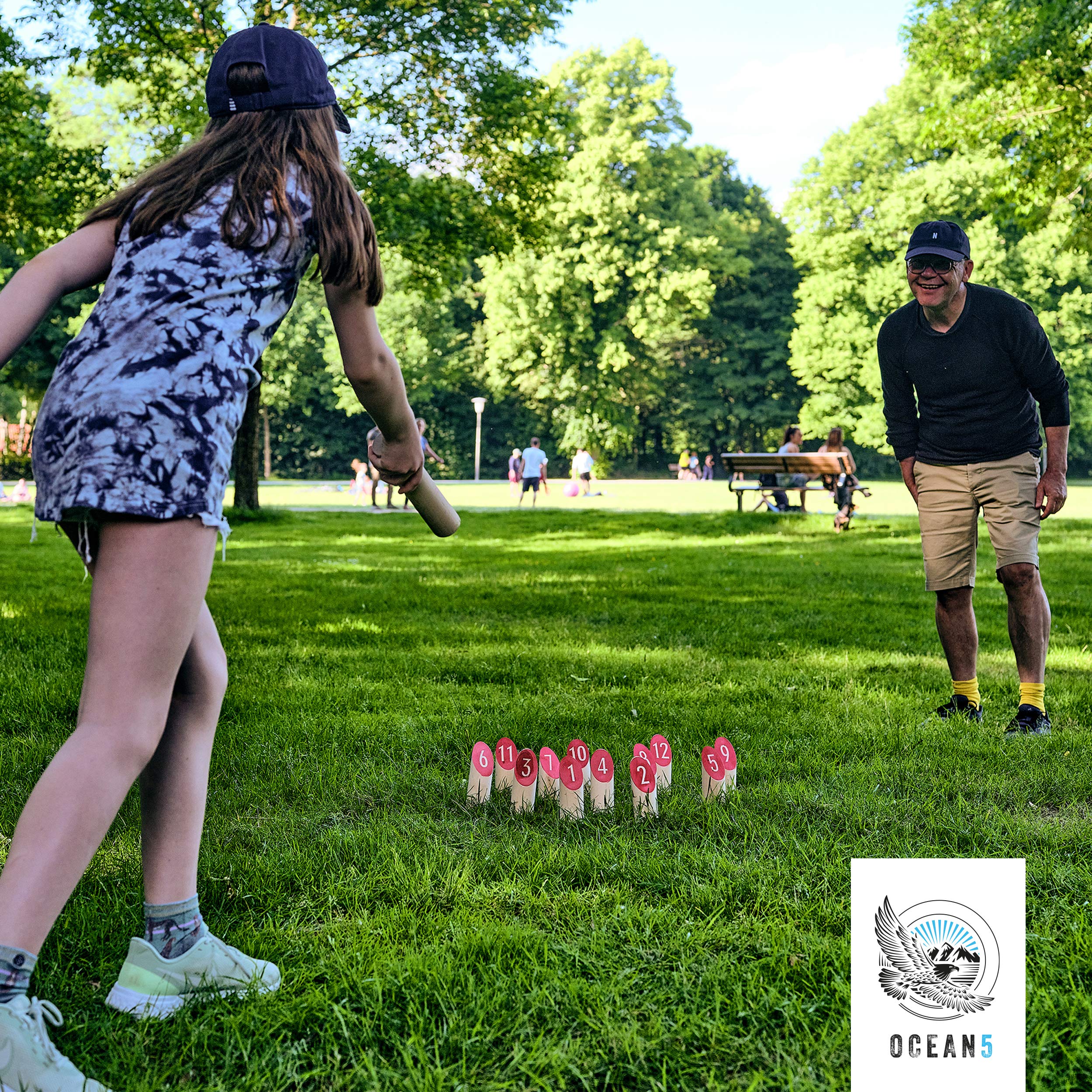 Suchst du ein lustiges Spiel für deine nächste Gartenparty? Dieses finnische Wikingerspiel Kubb macht riesigen Spaß für Groß und Klein! Das Set besteht aus 12 nummerierten Holzwürfeln, einem Wurfstab und einem praktischen Netzbeutel zur Aufbewahrung. Alles ist aus natürlichem Kiefernholz gefertigt - robust und langlebig. Gespielt wird mit 2-6 Personen: Jeder wirft den Stab und versucht, die Holzwürfel umzuwerfen. Die Punkte entsprechen entweder der Nummer auf dem Holz oder der Anzahl der gefallenen Hölzer. Wer zuerst genau 50 Punkte erreicht, gewinnt! Perfekt für den Garten, Strand, Park oder auch drinnen. Einfache Regeln, großer Spielspaß - bestell es und werde zum Wikinger-Champion!