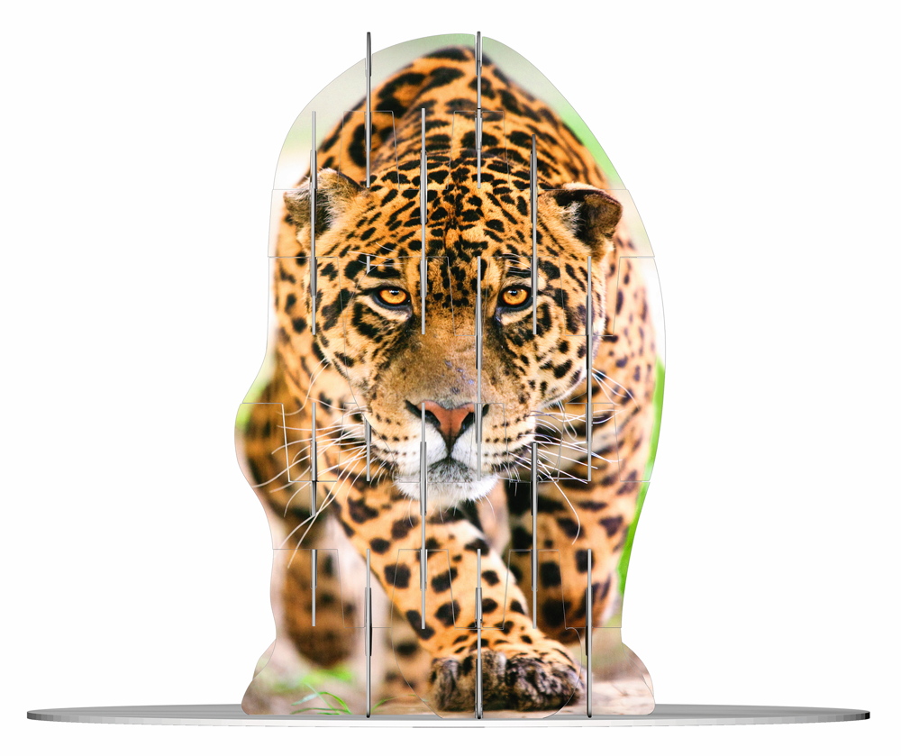 So funktioniert's: Die nummerierten Teile von unten nach oben zusammenstecken - die seitlichen Nummern helfen bei der Orientierung! Kein Kleben, kein Schneiden - einfach ineinander stecken! Wenn das letzte Teil sitzt, kommt der verblüffende Effekt: Dreh das Objekt und entdecke vier komplett verschiedene Wildkatzen-Motive!