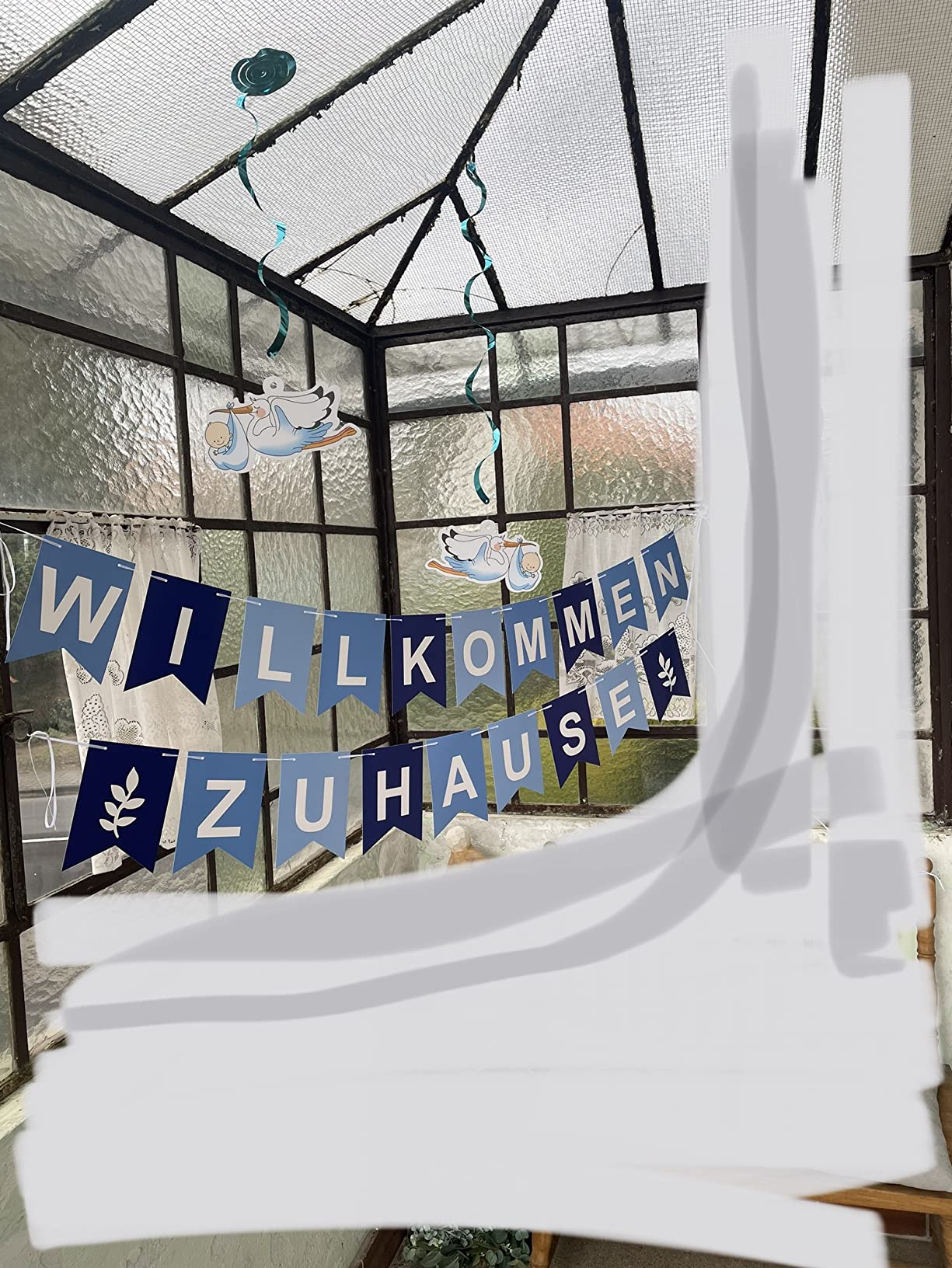 Ein herzliches Willkommen fürs neue Baby! Dieses süße Banner mit Storch-Motiv macht die Heimkehr nach der Geburt zu was Besonderem. Einfach zusammenzubauen: Die Pappkarten mit dem weißen Band verbinden, die Storchen-Anhänger dran - fertig! Alles aus umweltfreundlichem Papier, die blau-weiße Farbkombination wirkt frisch und freundlich. Perfekt für die Baby-Party, Taufe oder um das Kinderzimmer zu schmücken. Du kannst die Girlande an Wänden, Türen oder Fenstern aufhängen - sie sieht überall toll aus. Ein wunderschönes Geschenk für frischgebackene Eltern, das lange in Erinnerung bleibt.