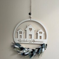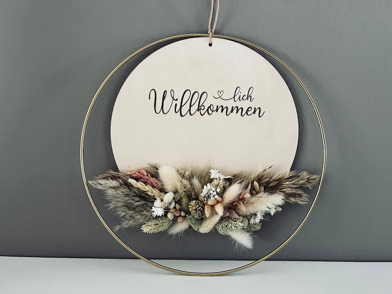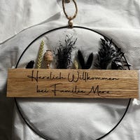 Herzlich Willkommen in stylischem Design! 🌸 Dieser wunderschöne Trockenblumenkranz mit 28 cm Durchmesser begrüßt deine Gäste mit natürlicher Eleganz. Handgefertigt aus naturbelassenem Holz, Jute, Trockenblumen und filigranen Motiven (Haus & Lebensbaum) ist jedes Stück ein Unikat. Der große Vorteil: Trockenblumen welken nie und sind komplett plastikfrei! Mit Metallring und Aufhängebändchen sofort einsatzbereit an Tür, Fenster oder Wand. Das geringe Gewicht macht das Aufhängen und Umgestalten super einfach. Perfekt für: • Haustür-Dekoration • Wohnzimmer-Schmuck • Geschenk für Haus-Einweihungen • Ganzjährige Deko Ob zu Ostern, Hochzeiten oder Geburtstagen - dieser personalisierbare Kranz ist ein zeitloses Geschenk mit persönlicher Note. Verleihe deinem Zuhause ganzjährig festliche Atmosphäre mit diesem natürlichen Blickfang!