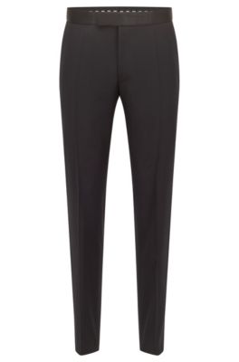 Elegant und modern! Diese Wilvorst Smoking Hose in Schwarz ist der absolute Style-Killer für besondere Anlässe. Aus 100% feinster Schurwolle (Super 120, 250g) mit Naturalstretch für optimalen Komfort. Im extra schmalen Drop8 Schnitt geschnitten - super trendig und figurbetont. Mit typischem Galon aus Satin an den Seitennähten, Tunnelbund und 39cm Fußweite. Perfekt für Black-Tie-Events, Hochzeiten, Examensfeiern oder als edle Streetwear. Die neue Slim Line Variante sitzt einfach perfekt! Sie müssen nicht auf eine formelle Einladung warten - mit dieser Hose machen Sie immer eine gute Figur!