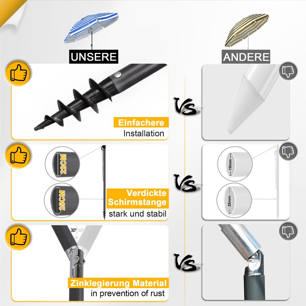 • Grandekor Sonnenschirm 180cm Strandschirm - Winddicht Mit UV50+ Schutz