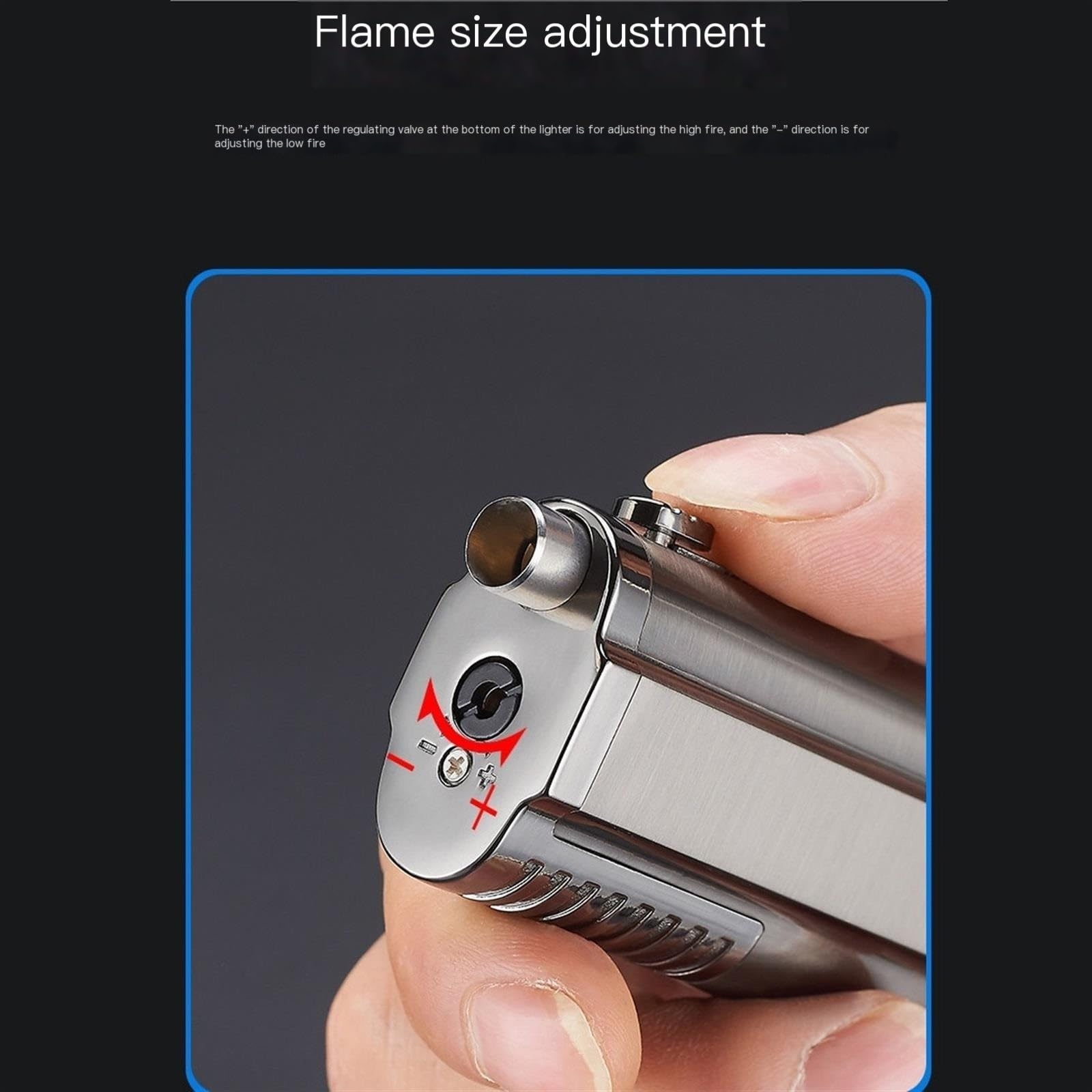 Power für jede Flamme! Dieses professionelle Butan Jet-Feuerzeug erzeugt eine starke, winddichte Flamme die bis zu 1300°C heiß wird. Aus hochwertiger Zinklegierung mit robustem Metallgehäuse. Der praktische Sicherheitsverschluss verhindert versehentliches Zünden - super sicher in der Handhabung. Die Flammengröße ist stufenlos verstellbar, das Feuerzeug nachfüllbar. Mit 360-Grad-Drehfunktion für bequeme Bedienung in jeder Position. Perfekt für Kerzen, Camping, Grillen, Handwerksarbeiten oder unterwegs. Wichtiger Hinweis: Aus Sicherheitsgründen wird das Feuerzeug ohne Butan geliefert. Ein tolles Geschenk für Männer, Köche oder Outdoor-Enthusiasten. Egal ob bei Wind, Regen oder in der Küche - dieses Feuerzeug zündet garantiert. Ein echter Allrounder für alle, die eine zuverlässige Zündquelle brauchen!