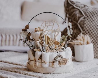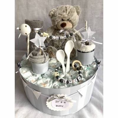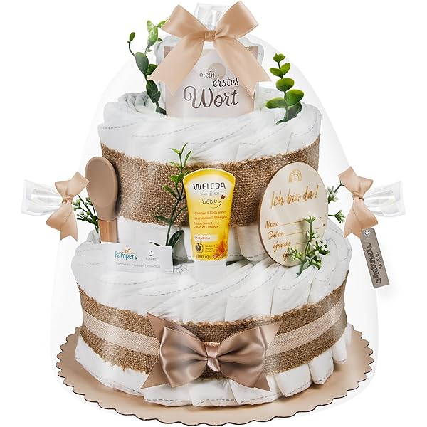 Hey, suchst du ein ganz besonderes Geschenk zur Geburt oder Taufe? Diese süße Windeltorte wird in liebevoller Handarbeit speziell für dich angefertigt - sogar mit personalisiertem Namen! Im niedlichen Drachen-Design mit natürlichem Eukalyptus und Salbei - einfach zauberhaft! Inhalt: ca. 40 Windeln in Größe 3, plus kuschelweiches Plüschtier-Drache, Söckchen und Babywaschlappen - alles, was man in den ersten Monaten so braucht. In Klarsichtfolie verpackt, ist sie sofort versandbereit und macht auf jeder Babyparty eine super Figur. Made in Germany - Qualität, auf die man sich verlassen kann! Du kannst die Torte sogar noch mit weiteren Artikeln individualisieren - frag einfach nach den Möglichkeiten! Viel schöner als ein langweiliges Geschenkpaket und garantiert ein Highlight auf der Baby-Party. Einfach bestellen, Namen angeben und dich über strahlende Augen der frischgebackenen Eltern freuen - das ist doch mal ein Geschenk, das in Erinnerung bleibt!