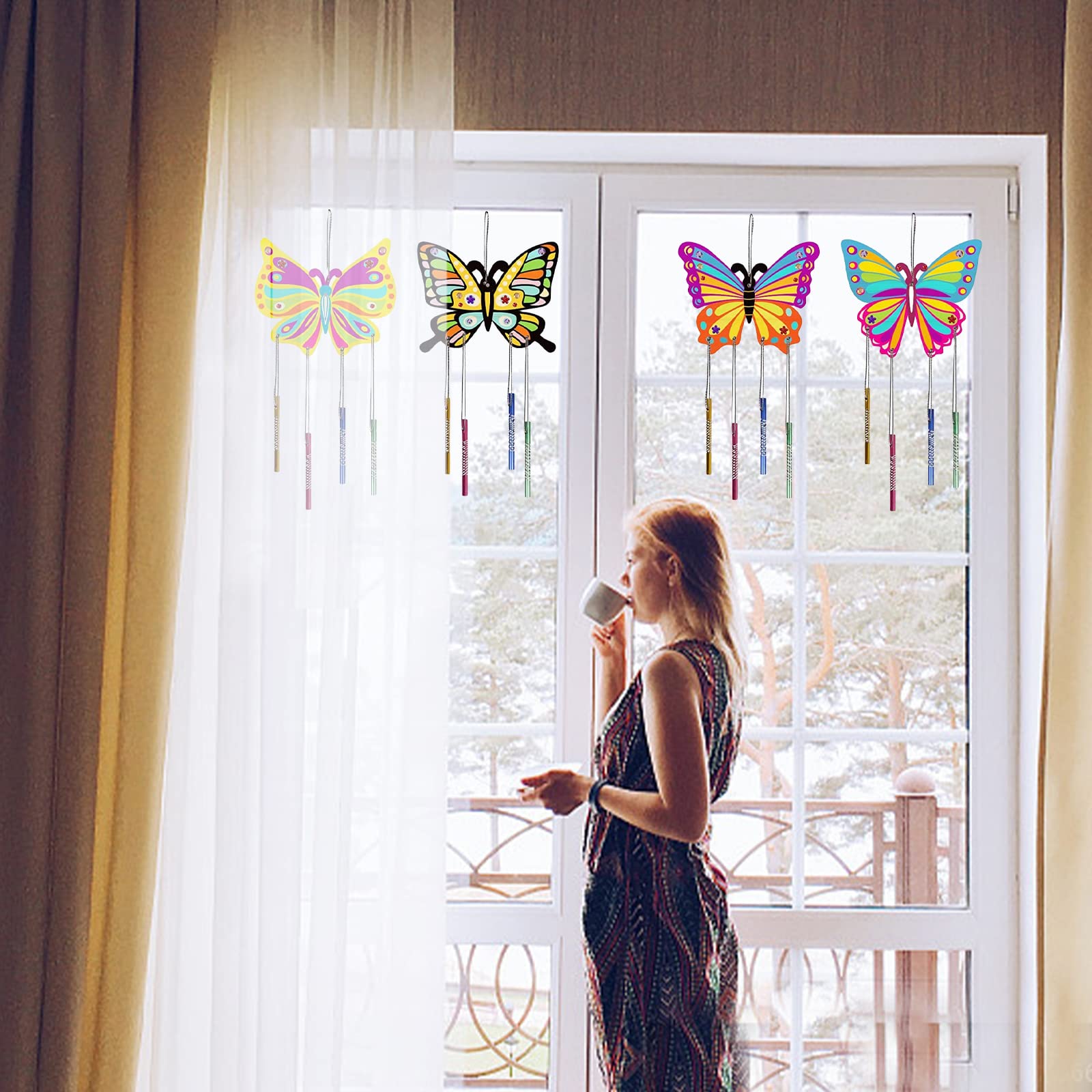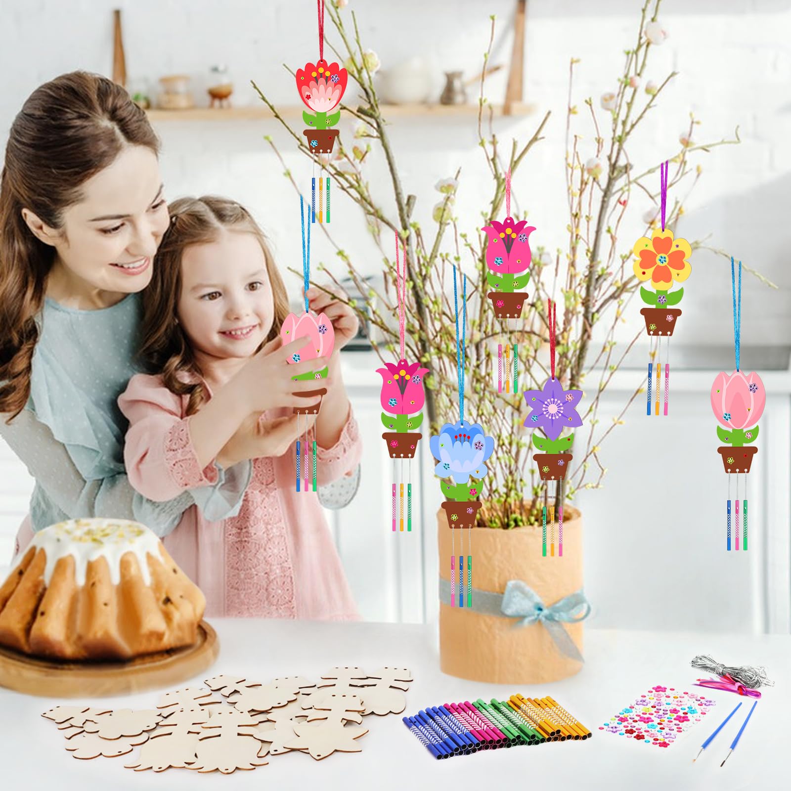 Kreativer Bastelspaß für Kinder! Dieses 14-teilige Windspiel Set enthält alles für stundenlangen Bastelspaß: 8 Holzschemetterlinge, 4 Blumen, 4 Regenbögen, plus 54 Röhren, Bänder, Aufkleber und Silberdraht. Aus naturbelassenem Holz, das die Kinder bunt bemalen können. Fördert die Fantasie und Feinmotorik - und am Ende haben sie was richtig Schönes für den Garten gebastelt! Perfekt für Kindergeburtstage, verregnete Nachmittage oder einfach so. Die Windspile sehen nicht nur hübsch aus, sie machen auch noch sanfte Klänge im Wind. Einfach zusammenbauen, bemalen und im Garten oder auf dem Balkon aufhängen. Macht jedes Zuhause gleich viel fröhlicher! Tolle Beschäftigung für Jungen und Mädchen ab 5-6 Jahren. Wenn du deine Kinder mal von Bildschirmen weglocken willst, ist das hier die perfekte Lösung. Und die Ergebnisse können sich wirklich sehen lassen - da sind die Kleinen richtig stolz drauf!