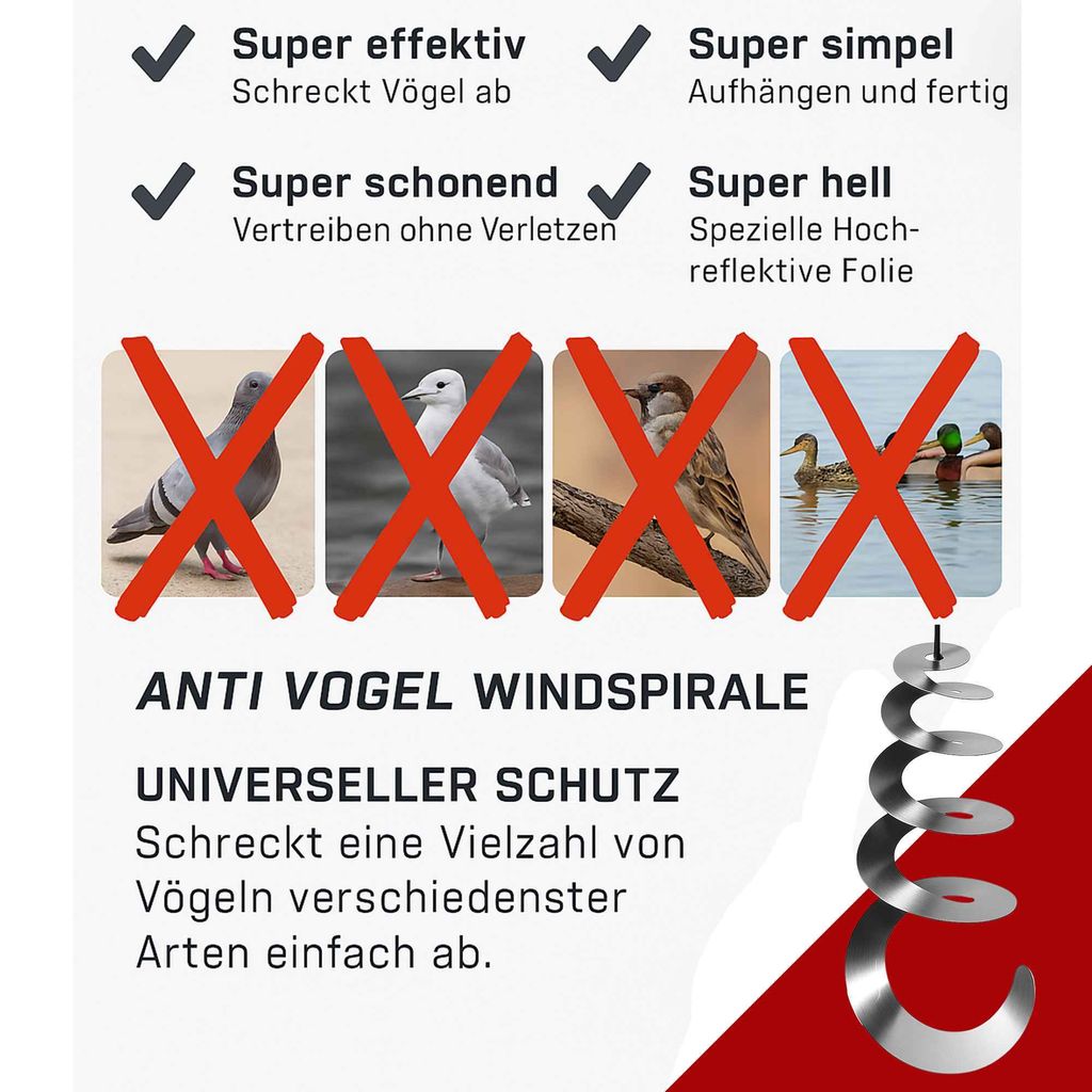 Diese bunten Windspiralen sind der perfekte Schutz für deine Pflanzen! Sobald der Wind weht, fangen sie an sich zu drehen und reflektieren das Licht - Vögel werden so effektiv aber tierfreundlich vertrieben. Perfekt für Obstbäume, Beete oder den Balkon. Einfach in die Erde stecken, schon sind sie einsatzbereit. Aus wetterfestem Kunststoff, der auch bei starkem Sonnenlicht nicht ausbleicht. Mit 9 verschiedenen Farben im Set hast du immer genug Vorrat und kannst sie flexibel im ganzen Garten verteilen. Eine super Lösung, um deine Ernte zu schützen, ohne den Tieren zu schaden!