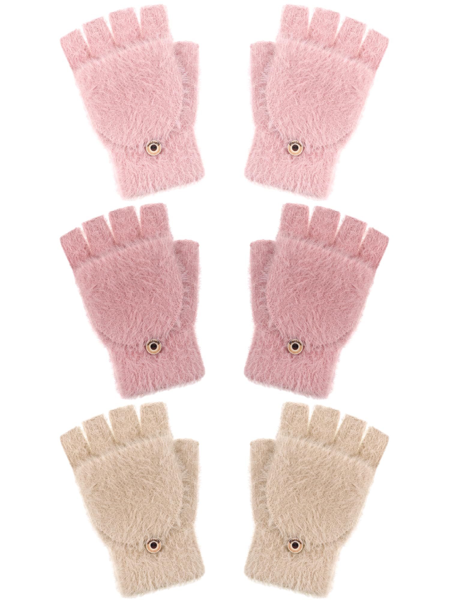 Hey, Eltern! Diese Handschuhe sind der Hit für eure Kids im Winter! Das geniale 2-in-1-Design: Normalerweise fingerlos fürs Tippen, Spielen, Schnürsenkel binden - und wenn's richtig kalt wird, einfach die Fäustlings-Klappe drüberklappen! Drei Paar in Grau, Gelb und Rosa - für jeden Tag eine andere Farbe! Das Material ist super: 90% Kristallgarn mit 10% Elasthan - dehnbar, warm und kuschelig weich. Perfekt für Kinder von 5-10 Jahren. Ob Schulweg, Schneeballschlacht oder Rodeln - damit bleiben die Händchen warm, aber die Kleinen können trotzdem alles machen. Und praktisch für euch: Maschinenwaschbar! Kein Stress mit komplizierter Pflege. Die niedlichen Farben und das coole Design finden Jungs und Mädchen gleichermaßen toll. Super Geschenkidee für Weihnachten oder Geburtstage - macht garantiert glückliche Kindergesichter!