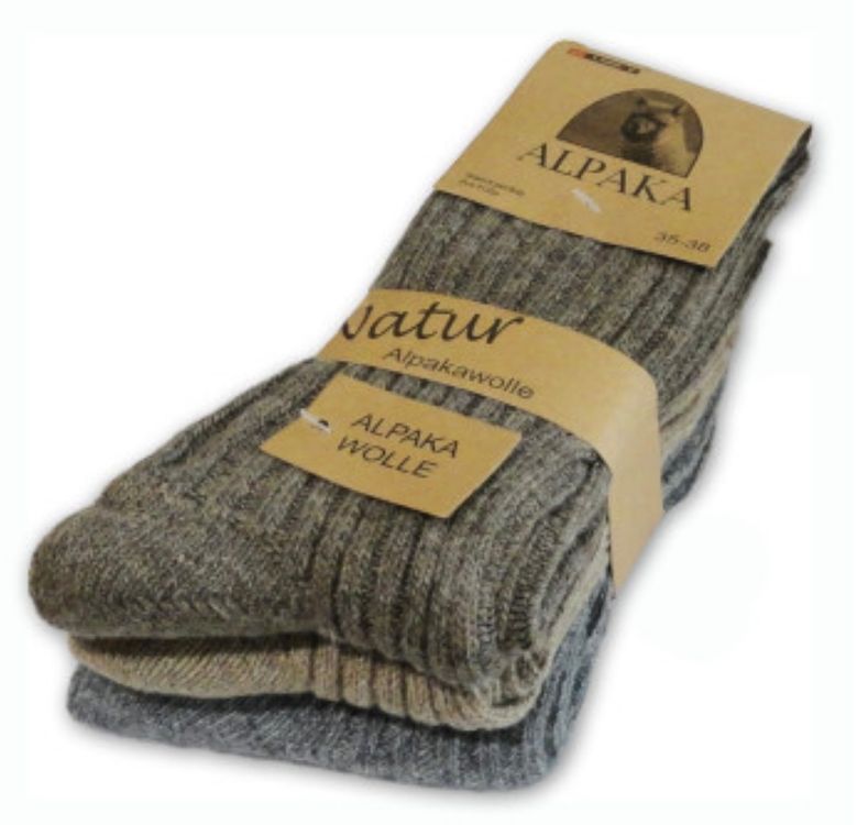 So kuschelig warm! 3 Paar bunte Wintersocken aus weicher Alpaka-Wolle. Material: 60% Polyester, 20% Polyacryl, 20% Wolle. Extrem elastisch - passen sich perfekt an jede Fußform an. Schon vorgewaschen - laufen nicht mehr ein. In Größen 35-38, 39-42 und 43-46 erhältlich. Ökologisch gefärbt mit hoher Wärmeisolierung. Perfekt als Bettsocken, für kalte Tage oder als Geschenk. Farben werden zufällig ausgewählt - Überraschungseffekt inklusive!