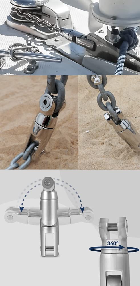 Bootsbesitzer und Segler - dieser Ankerwirbel aus 316er Edelstahl ist ein absolutes Muss für sicheres Ankern! Der Drehverbinder verhindert, dass sich deine Ankerkette verdreht und sorgt für eine zuverlässige Verbindung. Aus hochwertigem Edelstahl 316 gefertigt, ist er absolut korrosionsbeständig und hält auch der salzigen Meeresluft stand. Perfekt für Ankerketten, Dockleinen und Sicherungsseile. Mit 10-12mm Stärke passt er zu den meisten Bootsgrößen. Die Installation ist denkbar einfach - alles Nötige liegt bei! So bist du sicher unterwegs und musst dir keine Sorgen um versehentliches Lösen machen. Ob beim Angeln, Segeln oder einfach nur beim Anlegen - dieser Wirbel gibt dir die nötige Sicherheit. Ein unverzichtbares Teil für jeden, der Zeit auf dem Wasser verbringt! Einfach einhaken und du kannst beruhigt ankern. So macht Bootfahren noch mehr Spaß!
