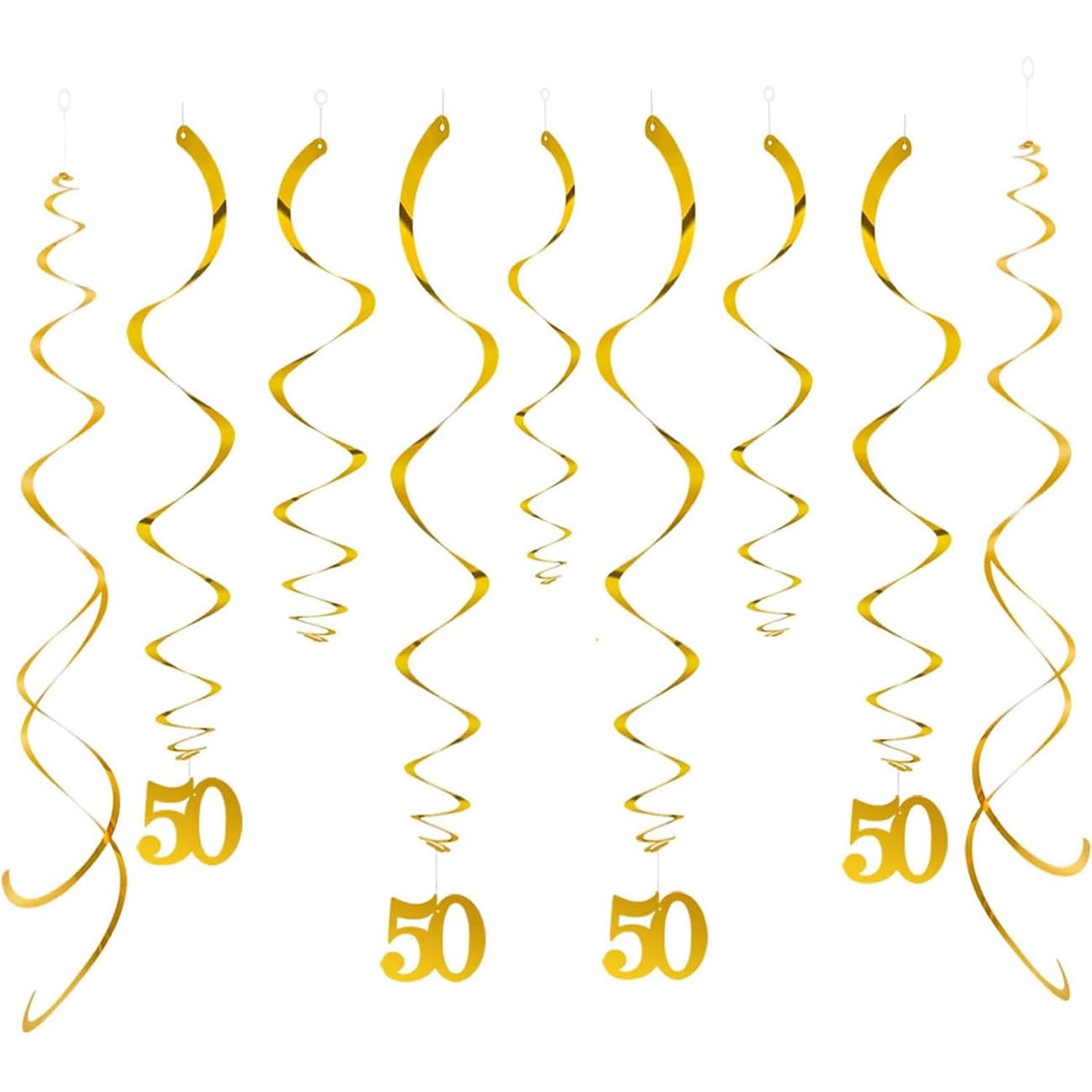 Wow, für die goldene Hochzeit das perfekte Deko-Set! 30 Teile in strahlendem Gold - da wird die Party zum absoluten Hingucker. Die Zahl 50 ist natürlich dabei, plus viele coole Wirbel und Girlanden. Aus robustem Kunststoff, also nächstes Jubiläum einfach wieder verwenden. Mit praktischen Aufhängebändern ganz easy an Decke, Fenstern oder über dem Buffet-Tisch zu befestigen. Schafft sofort diese besondere, festliche Stimmung - nicht nur für goldene Hochzeiten, sondern auch für runde Geburtstage oder andere besondere Anlässe. Deine Gäste werden begeistert sein! Einfach aufhängen und die Party kann starten. Perfekte Ergänzung zu Tischdeko, Servietten und allem anderen Gold-Zeug.