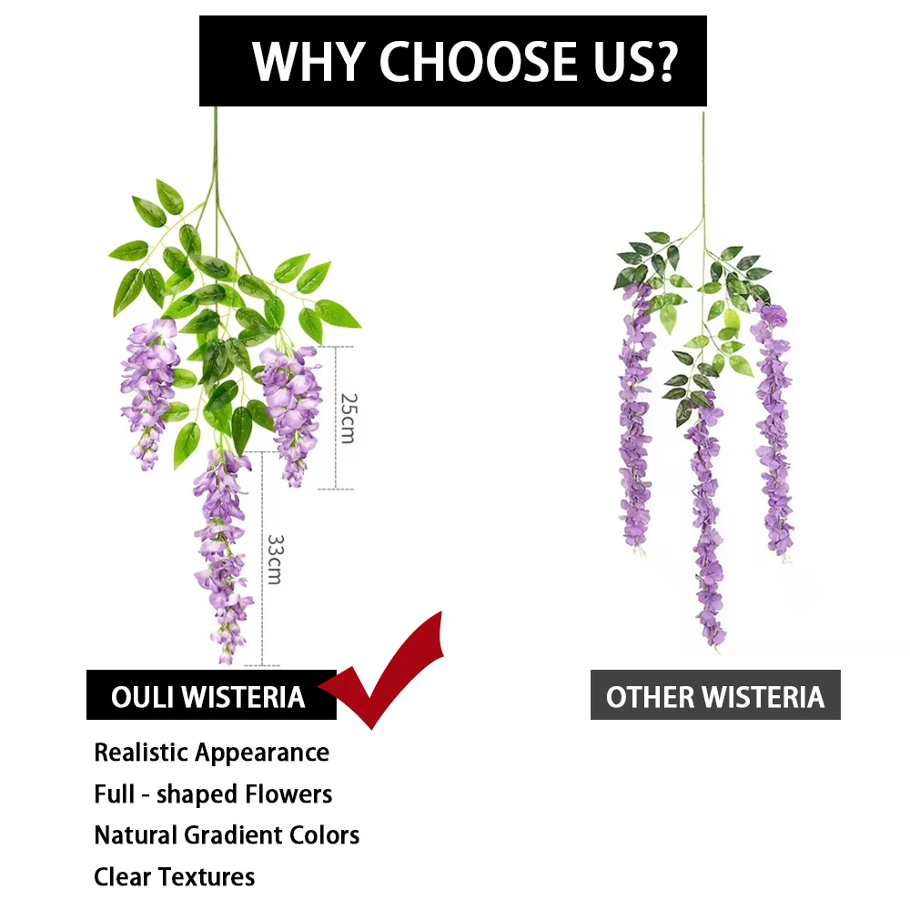 Wow, diese künstlichen Wisteria-Girlanden verwandeln deinen Garten in ein blühendes Paradies! Im Set sind zwei 90cm lange Girlanden in wunderschönem Lila enthalten. Aus hochwertigen Stoffblüten und Kunststoffstielen gefertigt, sehen sie täuschend echt aus und sind dabei absolut pflegefrei - kein Gießen, kein Beschneiden, kein Verwelken! Perfekt für die Dekoration von Balkonen, Gartenwänden, Zäunen oder als hängende Korbpflanzen. Die weichen Blüten und Blätter lassen sich leicht biegen und in die gewünschte Form bringen. Wind- und regenfest, sodass die Blüten nicht abfallen. Einfach die Girlanden um Geländer schlingen, an Wänden befestigen oder in Blumenkästen arrangieren - der Kreativität sind keine Grenzen gesetzt. Selbst nach dem Transport lassen sich die Blüten mit etwas Heißluft wieder in ihre ursprüngliche Form bringen. Hol dir jetzt diesen traumhaften Glyzinien-Look ohne jeglichen Pflegeaufwand!