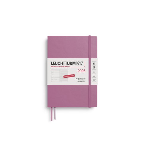 Organisation kann so schön sein! Dieser LEUCHTTURM1917 Wochenkalender im A5-Format (145x210 mm) vereint praktische Wochenübersicht mit genügend Platz für Notizen. Auf jeder Doppelseite links die Kalenderwoche, rechts eine linierte Seite für alles, was nicht vergessen werden darf. Mit 3-Jahres-Übersicht, Mondphasen, internationalen Feiertagen und Projektplaner. Das säurefreie 80g/m² Papier ist tintenfest, und die heraustrennbaren Blätter plus Falttasche im Einband bieten zusätzlichen Komfort. Zwei Lesezeichen, Verschlussgummi und beschriftbare Titel-/Rückenschilder machen ihn zum perfekten Begleiter für Beruf, Studium oder Privatleben. In Puderfarbe, komplett auf Deutsch - für alle, die Wert auf Qualität und gutes Design legen!