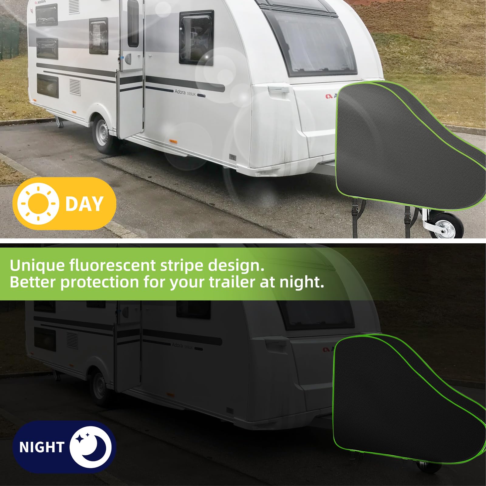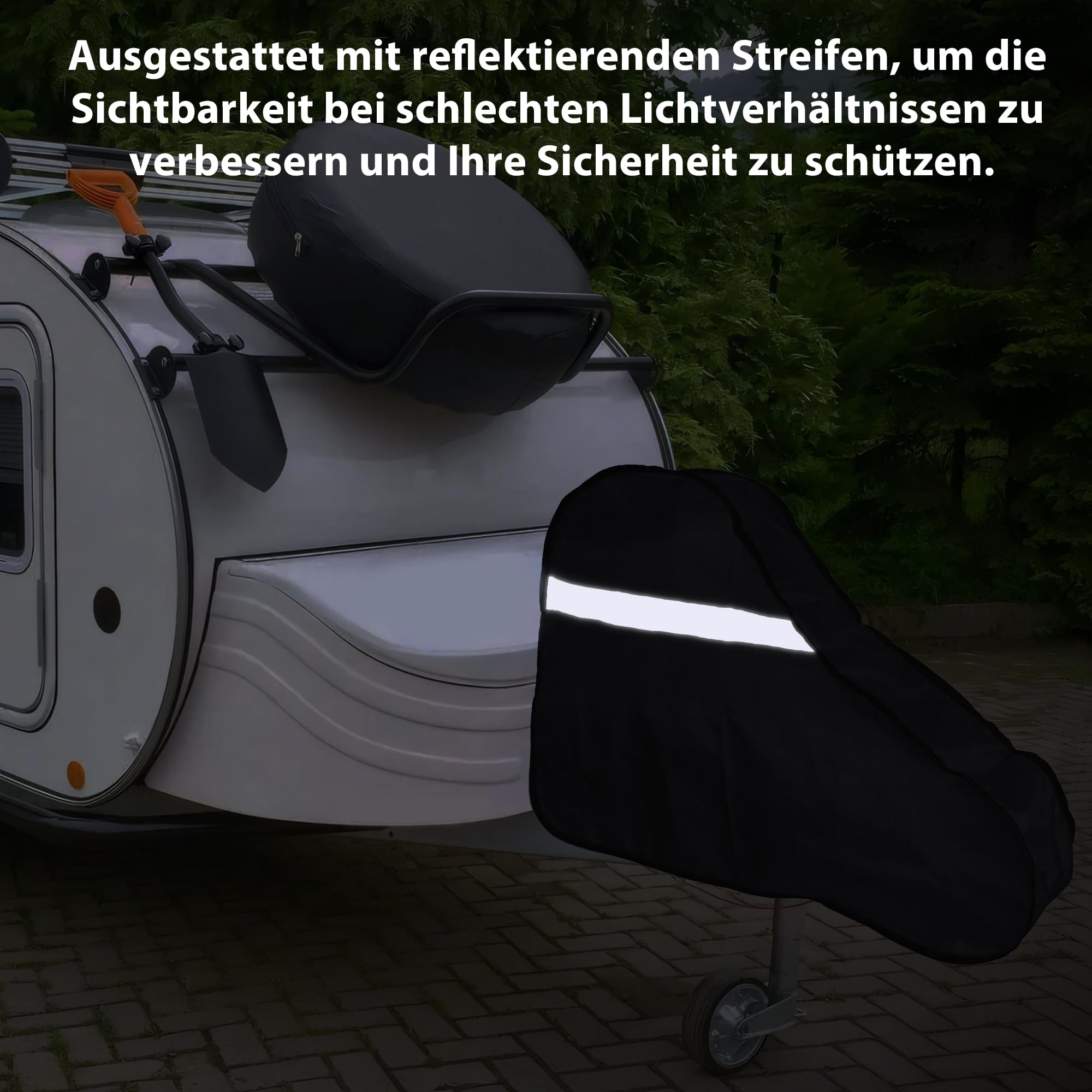 Schütze deine teure Anhängerkupplung vor Wind und Wetter! Diese Frstem Deichselabdeckung passt mit ihren Maßen 99x103x67 cm auf fast alle Wohnwagen, Pferdeanhänger und Bootstrailer. Aus hochdichtem 420D Oxford-Stoff gefertigt - das Zeug ist so robust wie militärische Ausrüstung! Absolut wasserdicht, UV-beständig und hält selbst extremem Wetter stand. Ob Regen, Schnee, Hitze oder Vogelkot - deine Deichsel bleibt geschützt. Die reflektierenden Elemente sorgen für mehr Sicherheit bei Nacht. Einfach über die Deichsel stülpen - fertig! Kein kompliziertes Befestigen nötig. Und wenn du sie nicht brauchst, lässt sie sich super klein zusammenfalten und verstauen. Spart dir teure Reparaturen durch Rost und Witterungsschäden. Dein Wohnwagen oder Anhänger sieht damit nicht nur gepflegter aus, sondern hält auch länger!